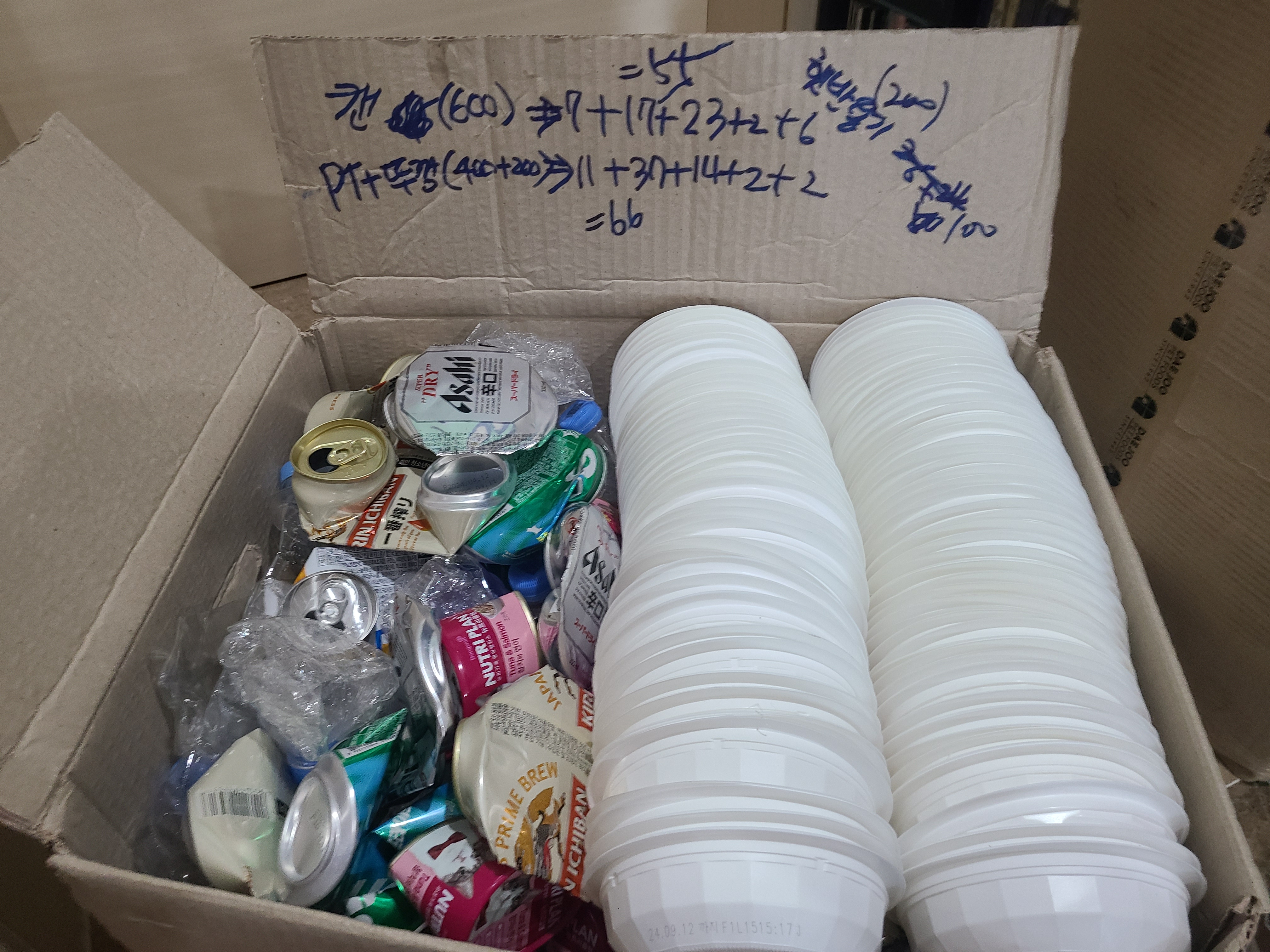휴가 가서 쓴 물병,캔 다 세척,건조,찌그려트려 챙겨와서 이번에도 중형박스 꽉꽉 채워서 보냈어요^^