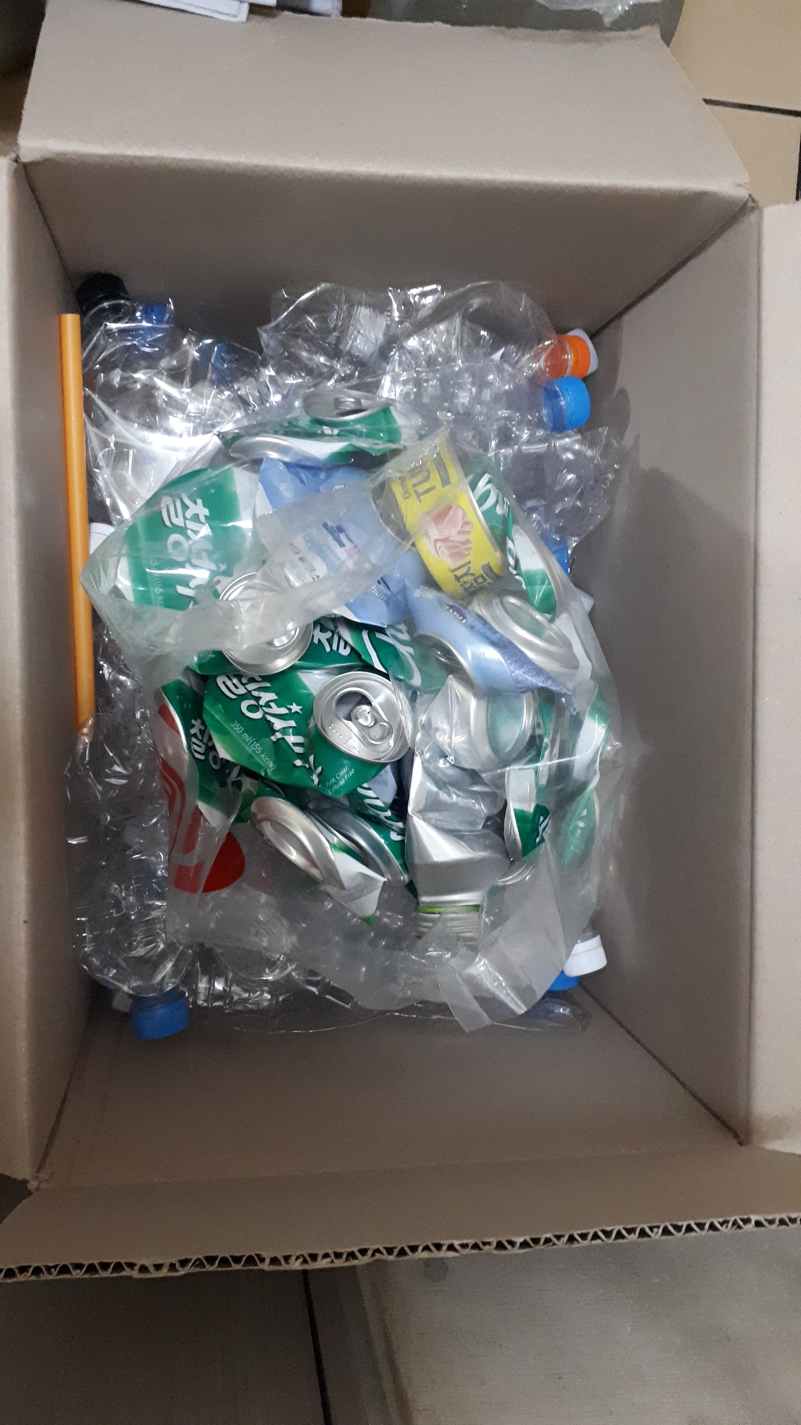 캔과 페트병을 모아서 보내요.