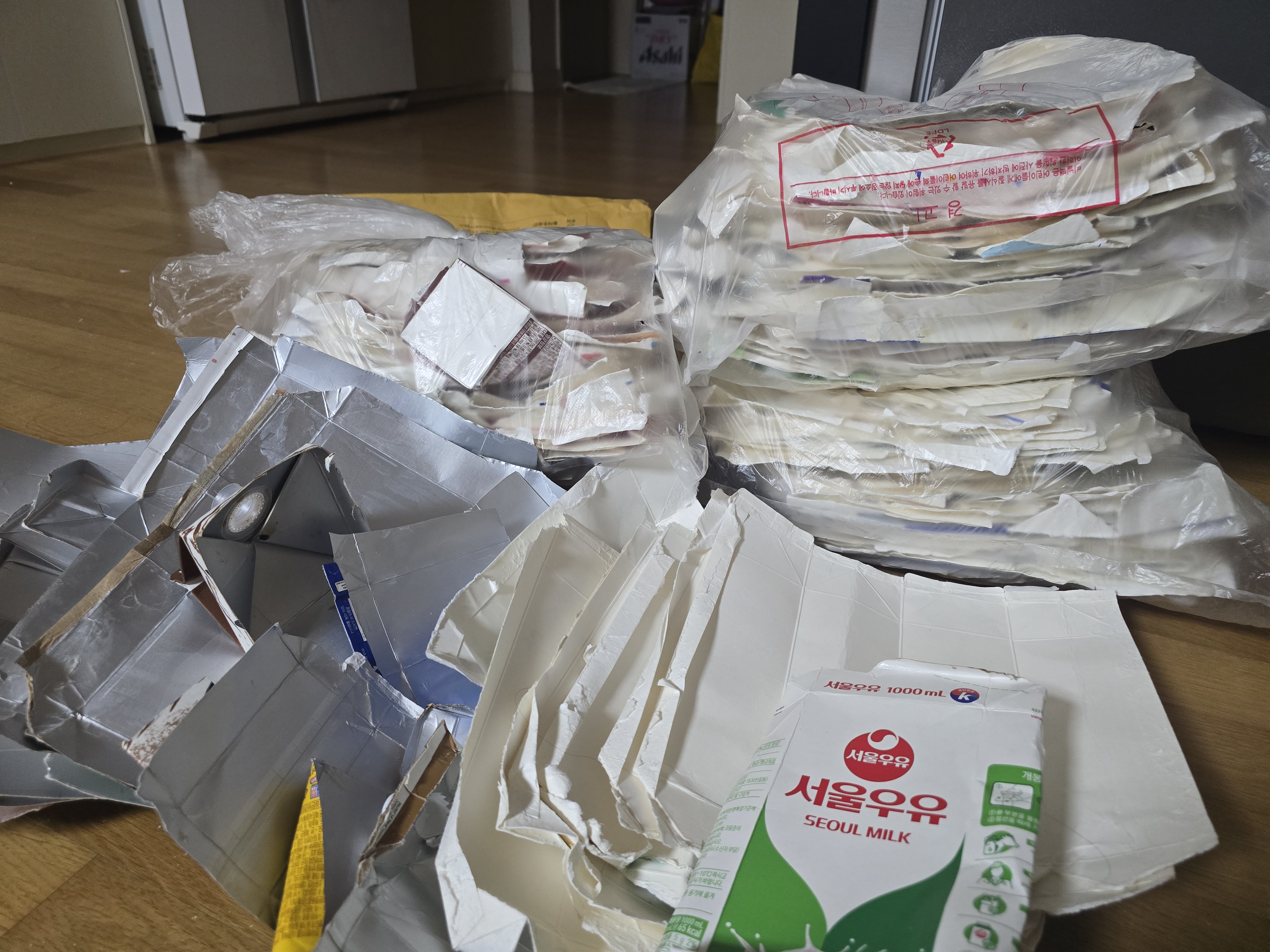 우유팩 거즘 2년 가까이 모았어요