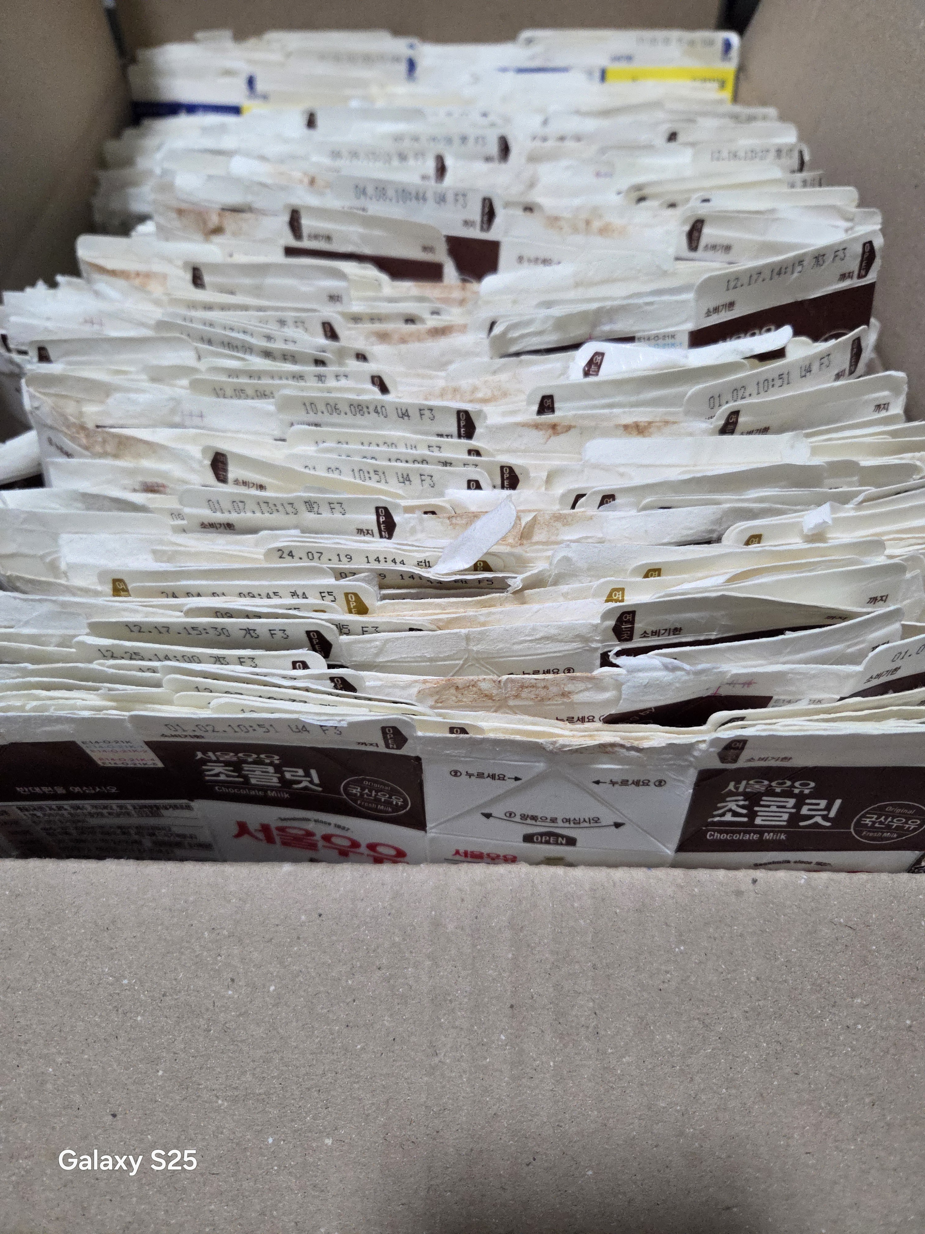 아이들이 마신 우유팩이에요