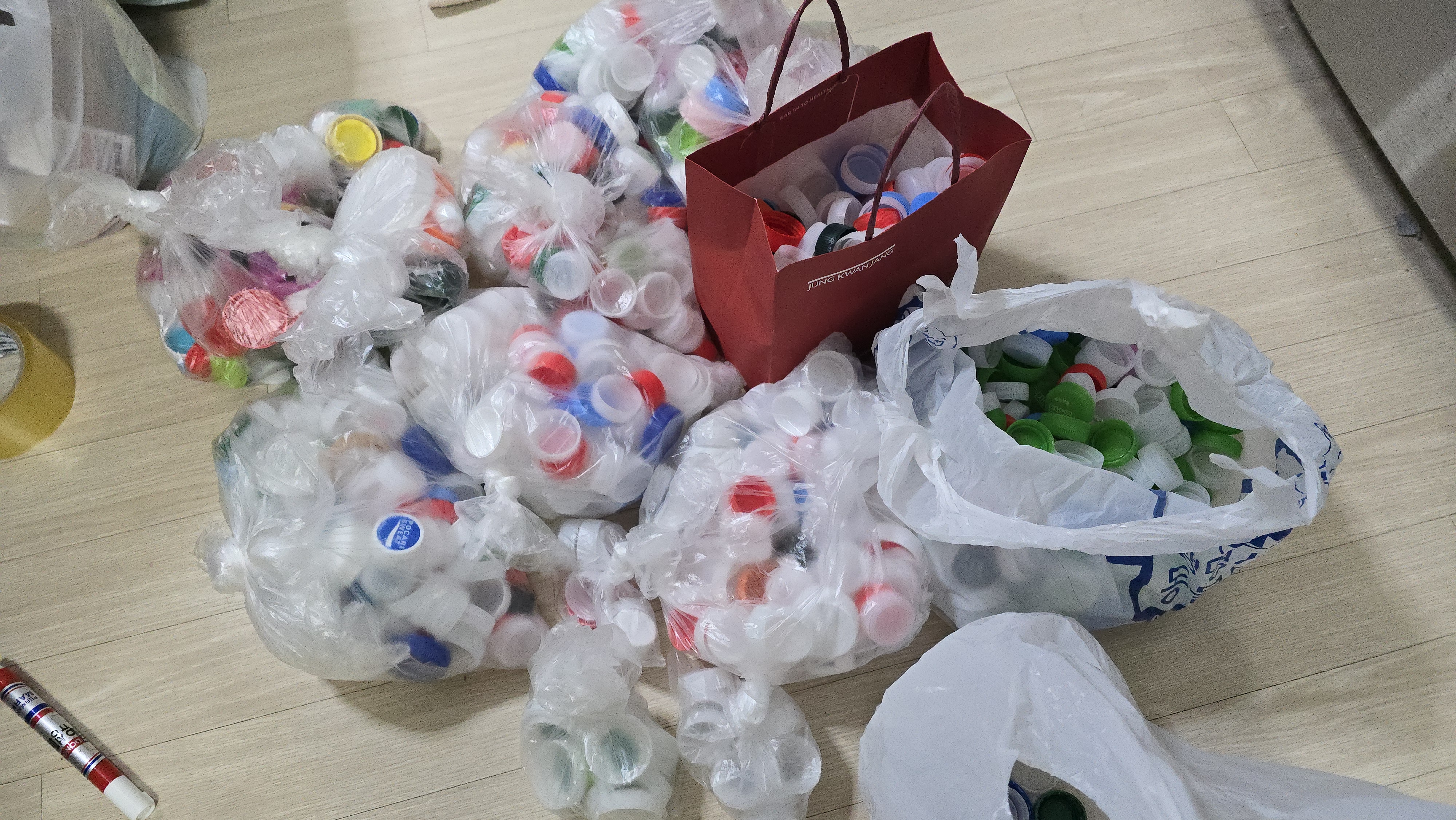 언니네 놀러가서도 병뚜껑 씻어서 주머니에 챙기니 생수먹는다면서 챙겨준다한게. 한보따리 두보따리 생기고 이래저래 모았어요.