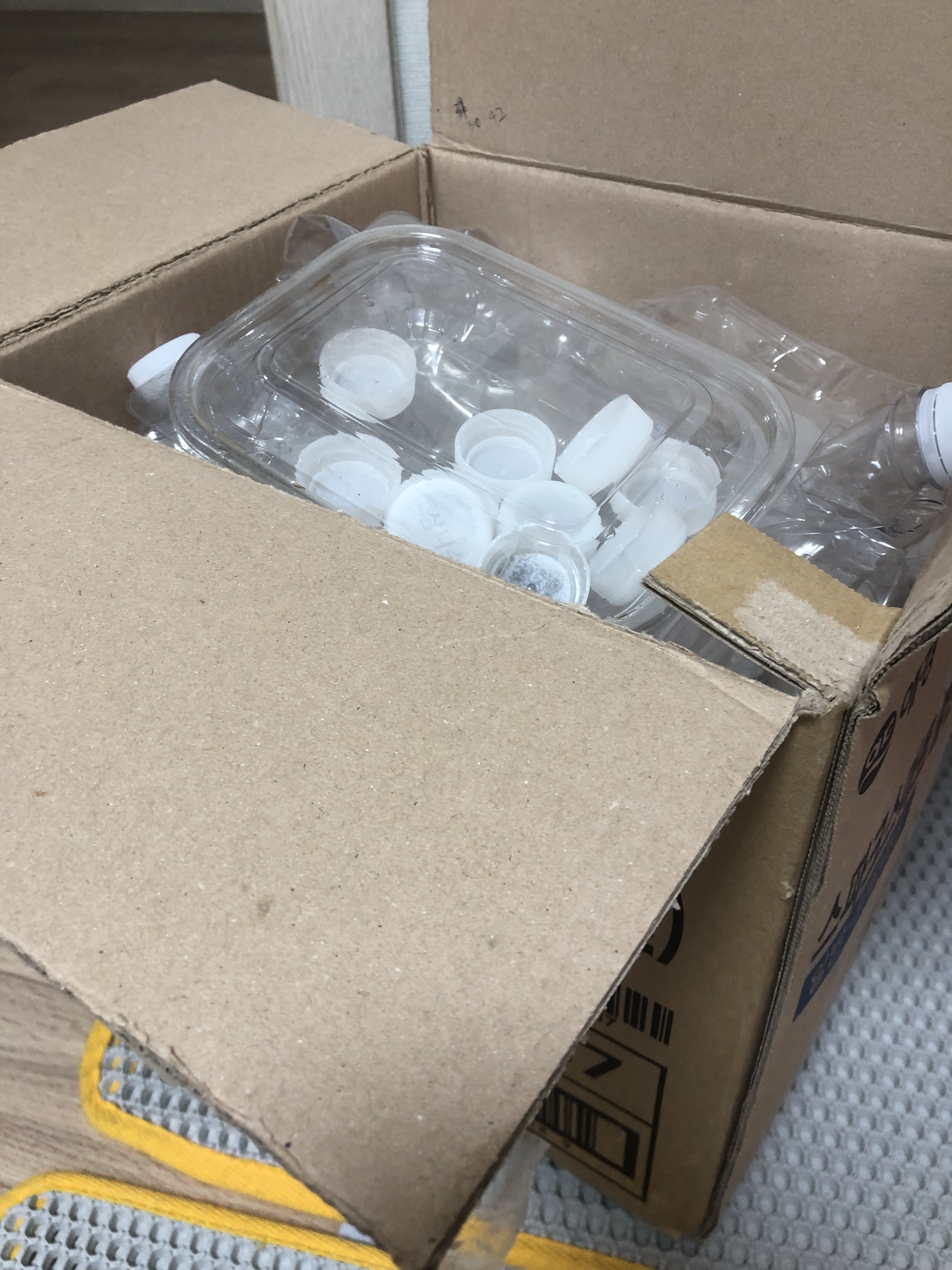캔과 플라스틱을 정리해서 차곡차곡 넣으니 한박스 완성! 두번째 택배보냅니다~~