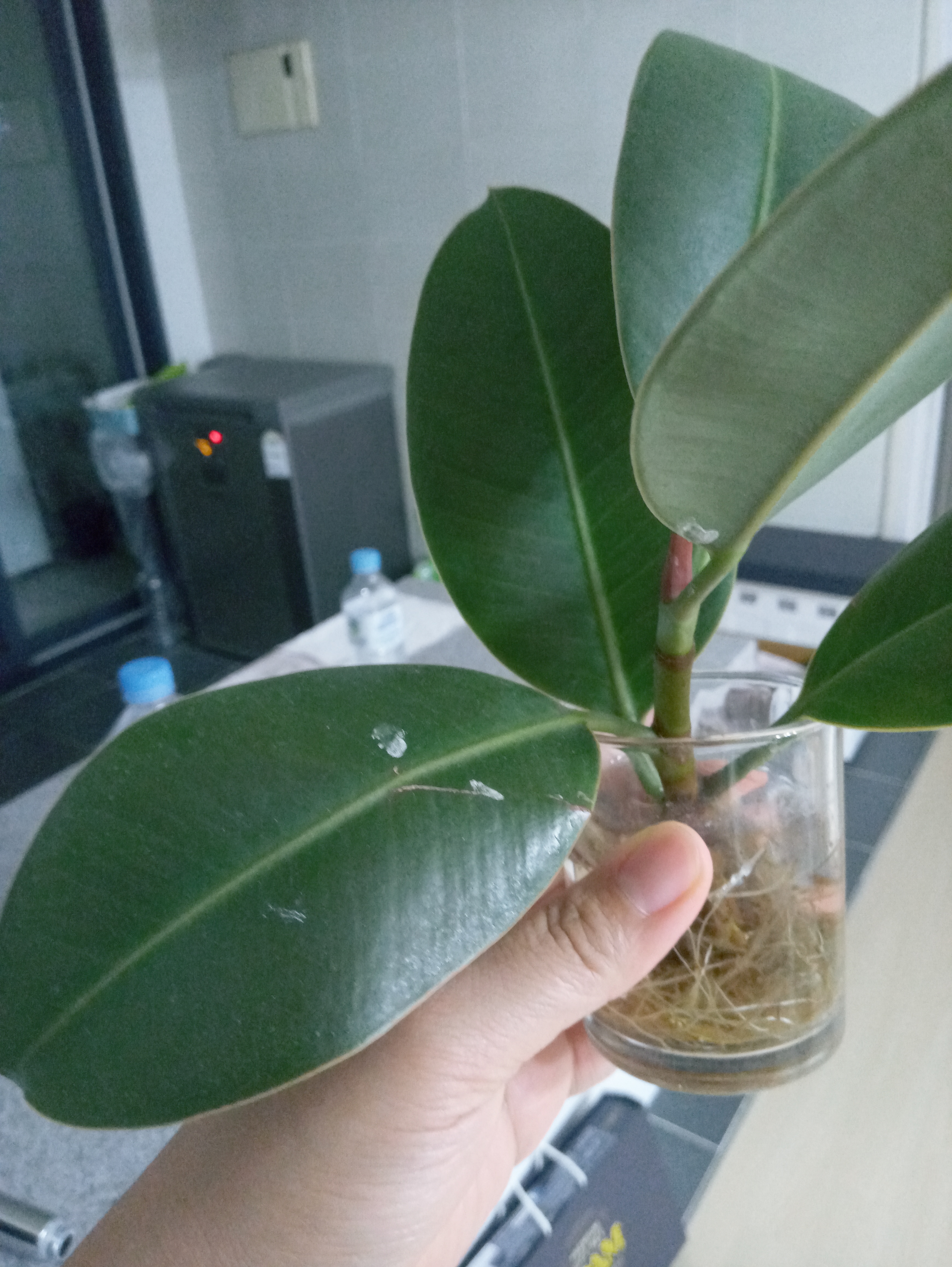 다쓴 캔들용기를 재활용해서 고무나무 수경재배 했어용