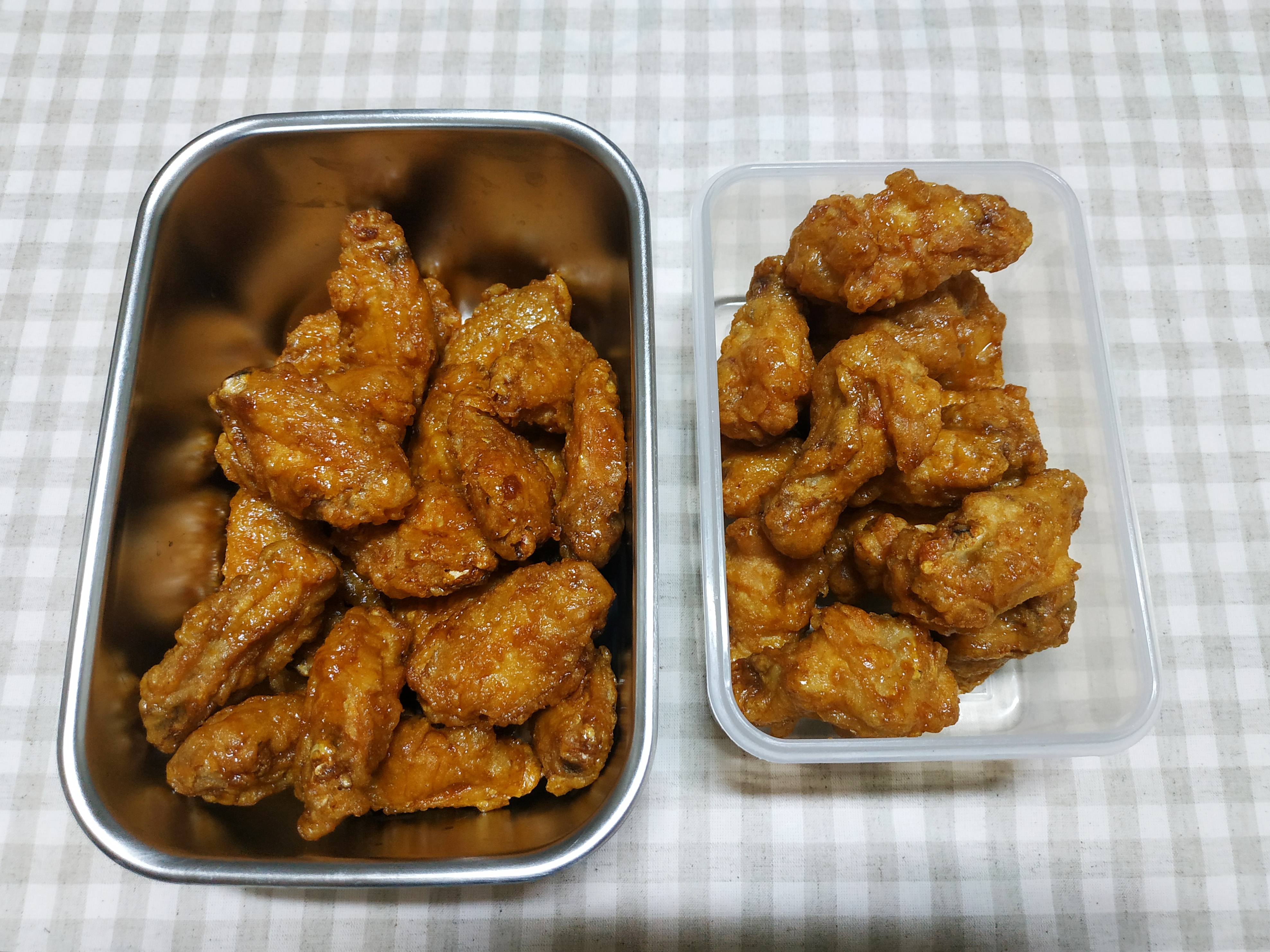 반찬통에 치킨 포장해오기