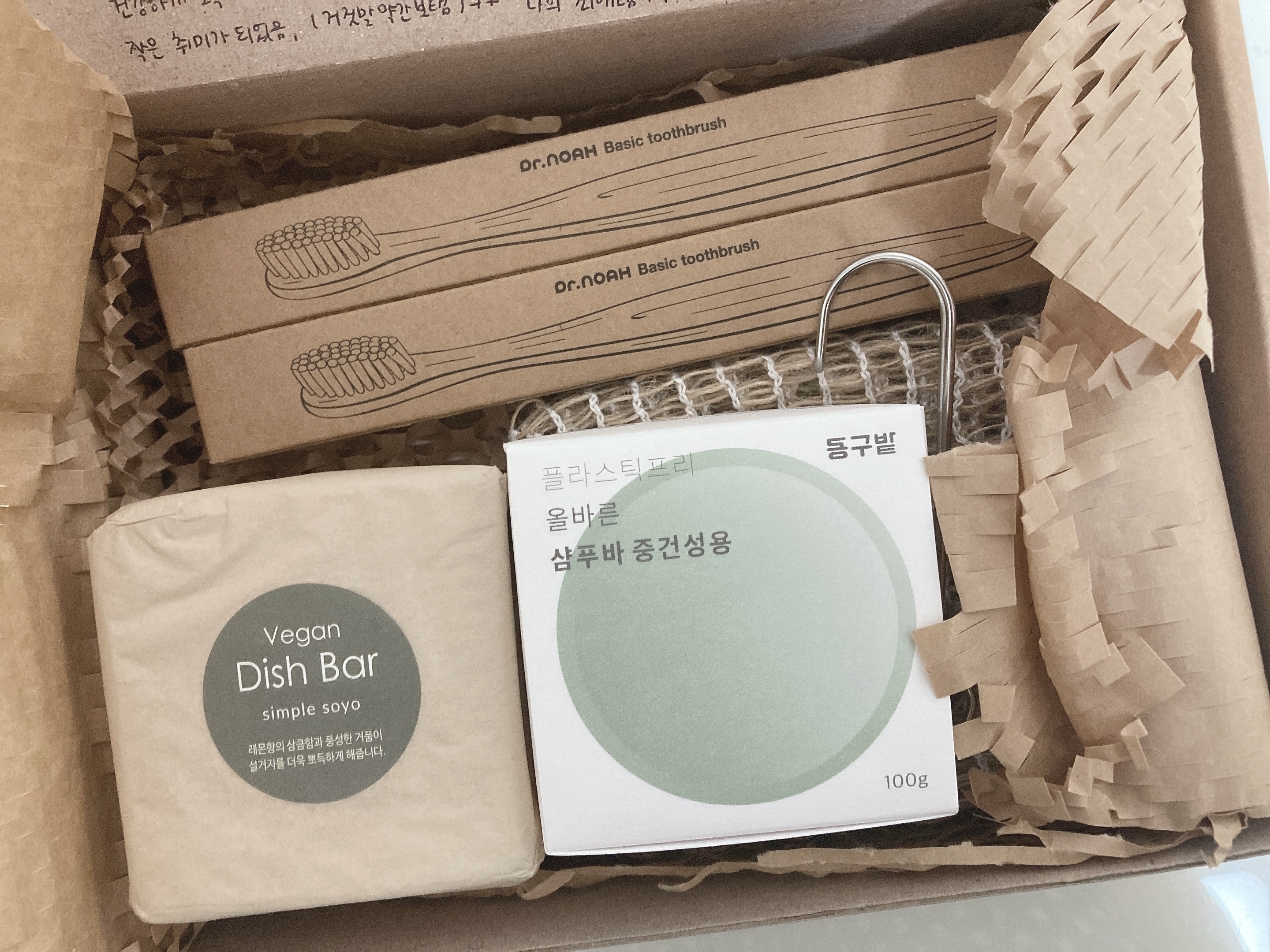 제로웨이스트 용품 담아 선물 상자 포장했어요