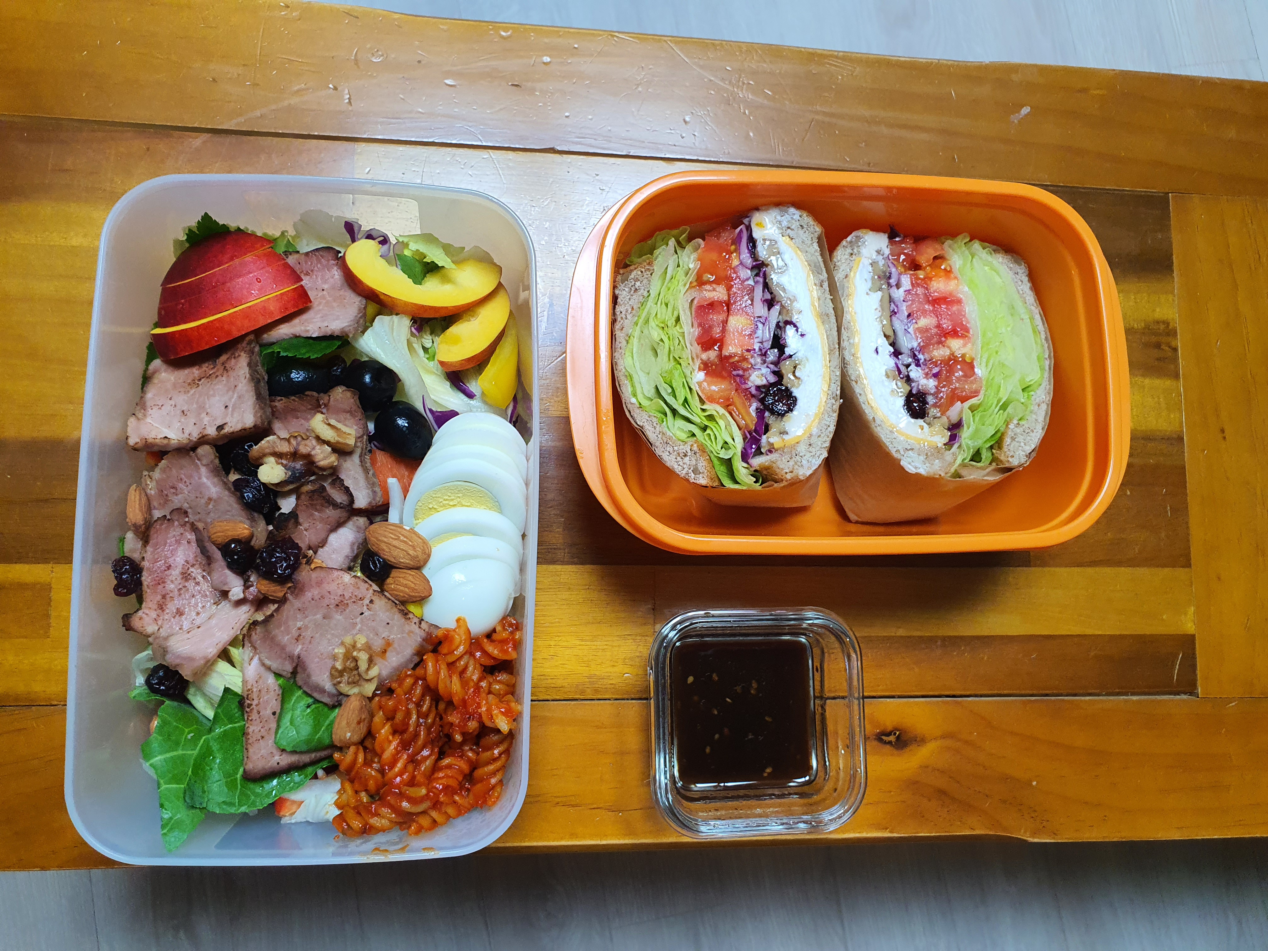 훈제 목살 샐러드와 리코타치즈 샌드위치를
