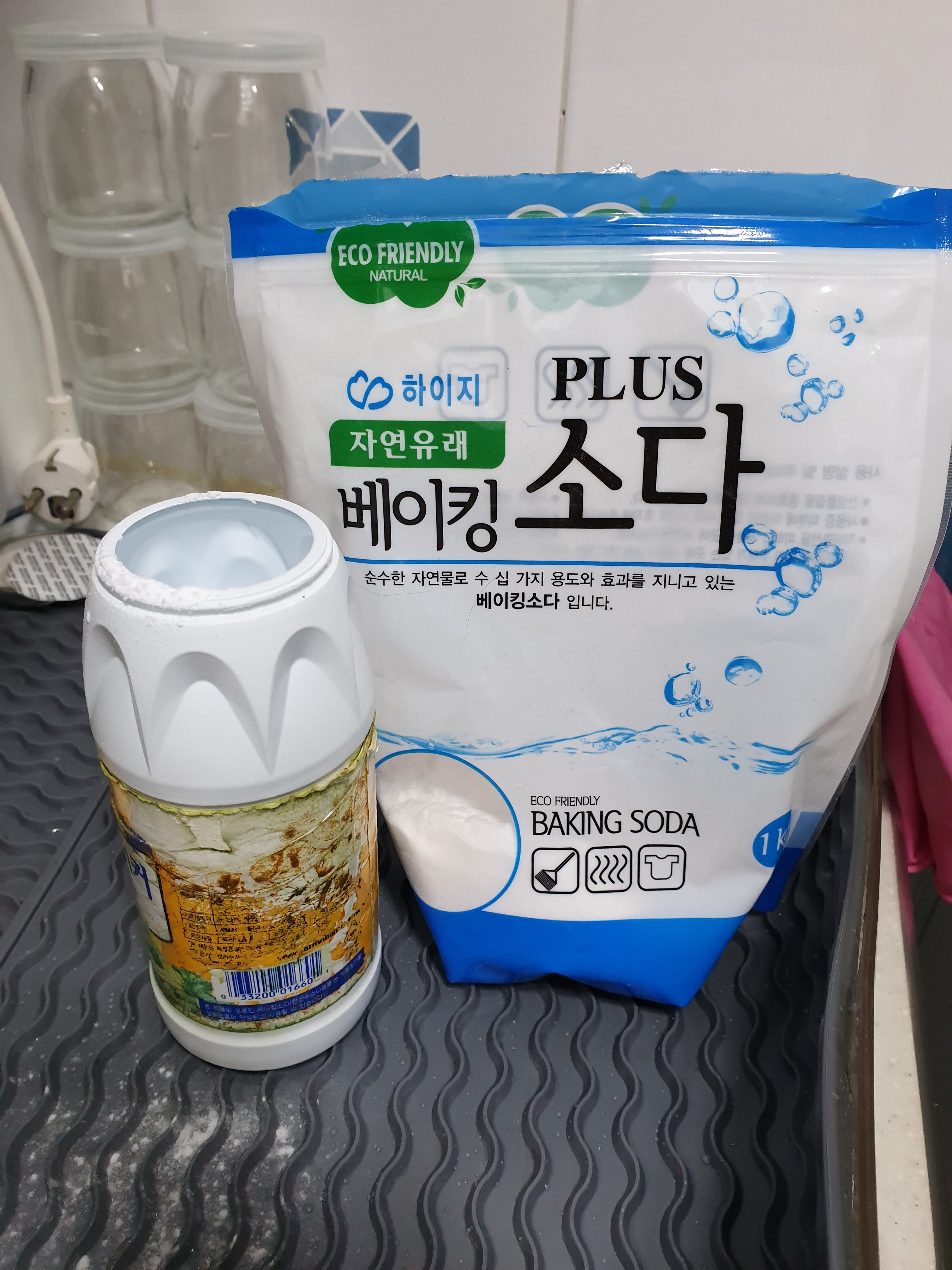베이킹소다를 리필을 사서 전에쓰던 통에 넣어서 계속쓰고 있어요