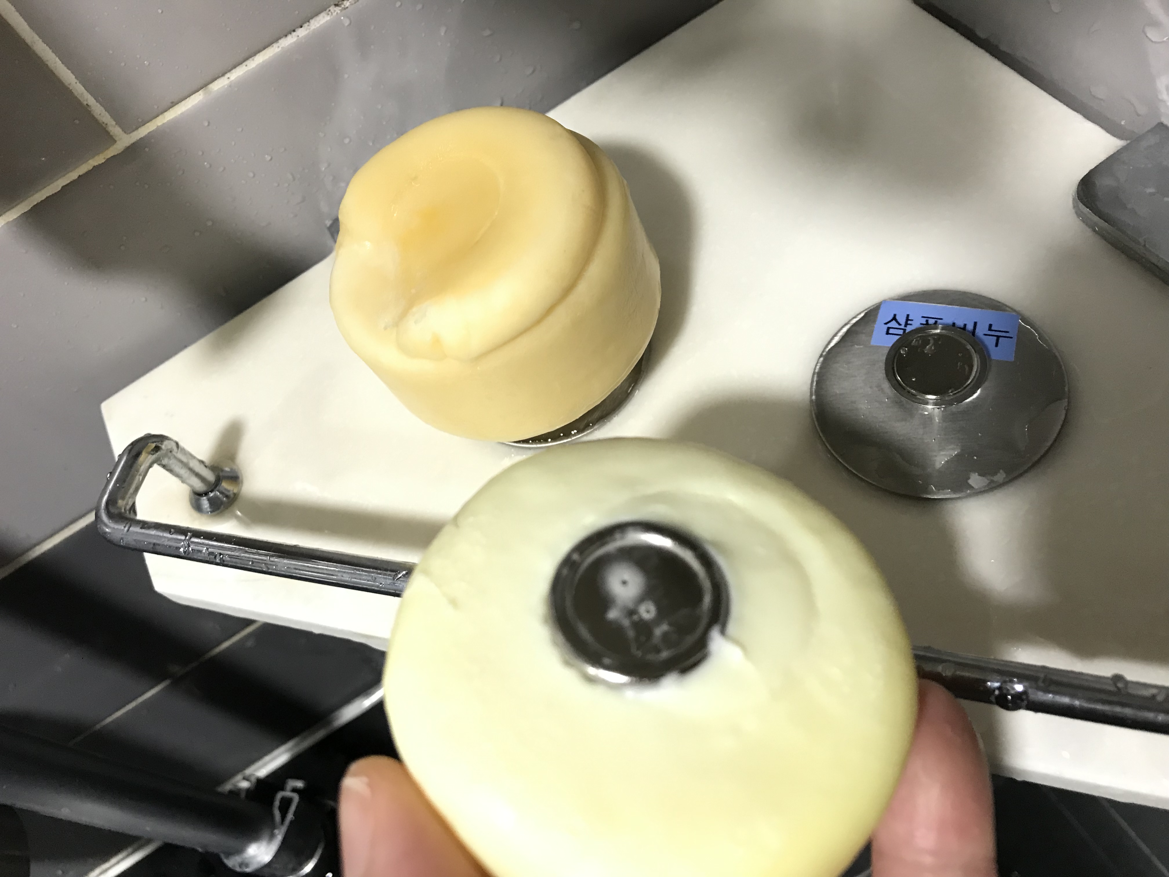 비누홀더를 바닥에 붙히고, 라벨링까지 해뒀어요