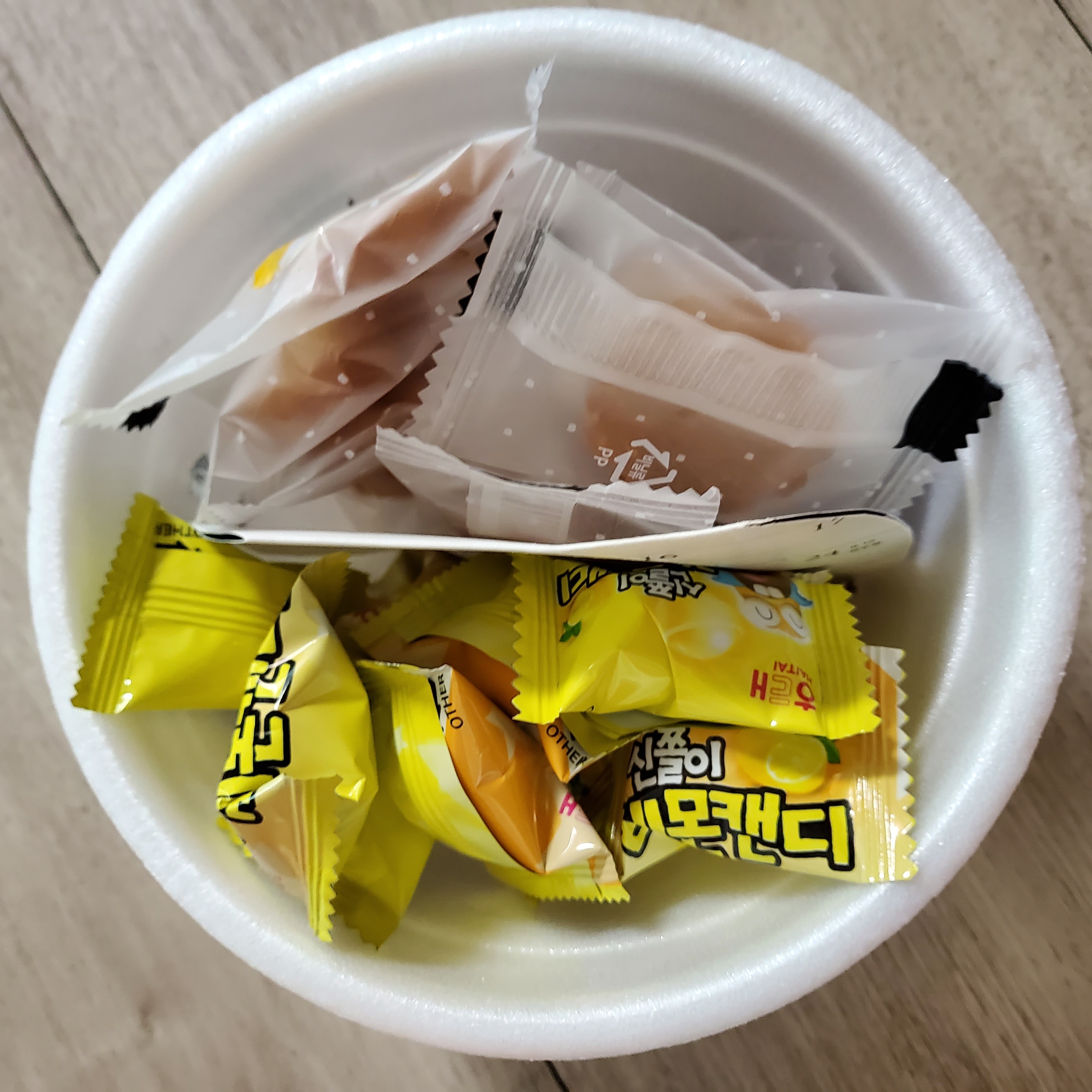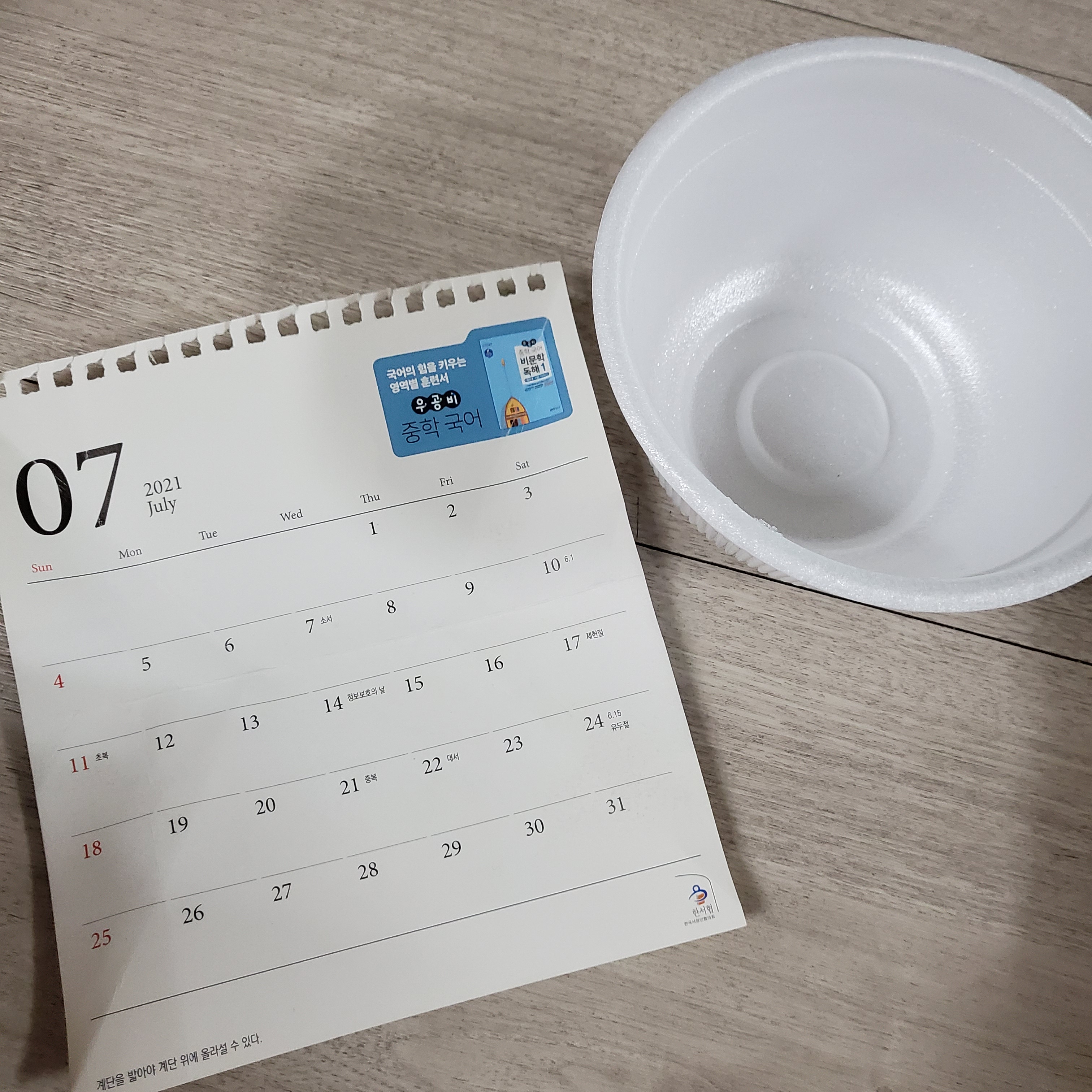 그러다보니 가끔 사발면 빈 용기가 나오는데 깨끗해서 버리는것보다 제로웨이스트 생각하며 달 지난 책상 달력과 함께 간식통 만들었지요~~