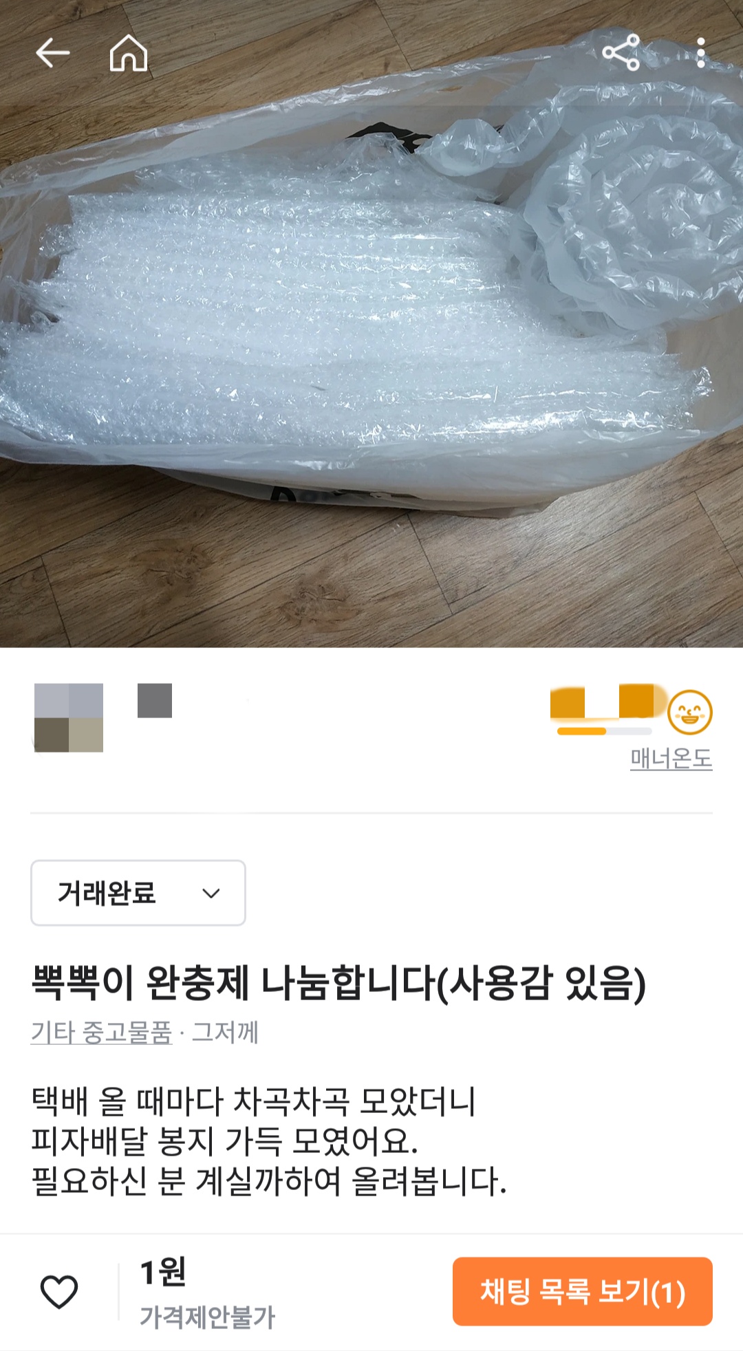 택배 올 때마다 차곡차곡 모았더니 어느새 이만큼이나 모였더라고요. 중고마켓에 나눔글 올렸더니 필요하신 동네 이웃이 가져가셨어요ㅎ 일회용품이지만 한 번 더 사용될 수 있어서 기뻐요ㅎ