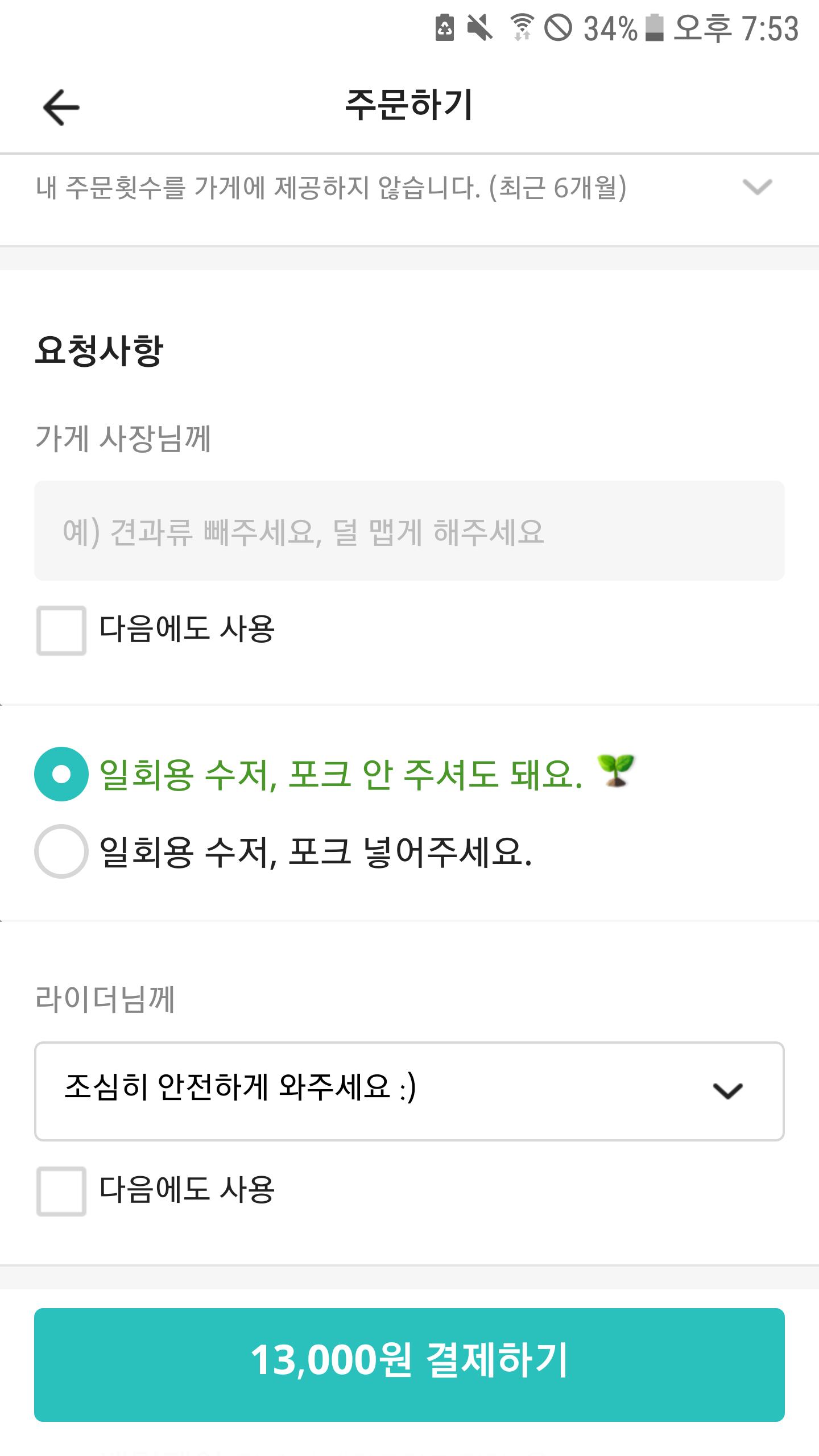 배달 시킬때 늘 일회용 수저 받지 않아요. 코로나 때문에 일회용품 소비가 엄청나게 늘었다고하는데 작은것부터 실천 해봅니다.