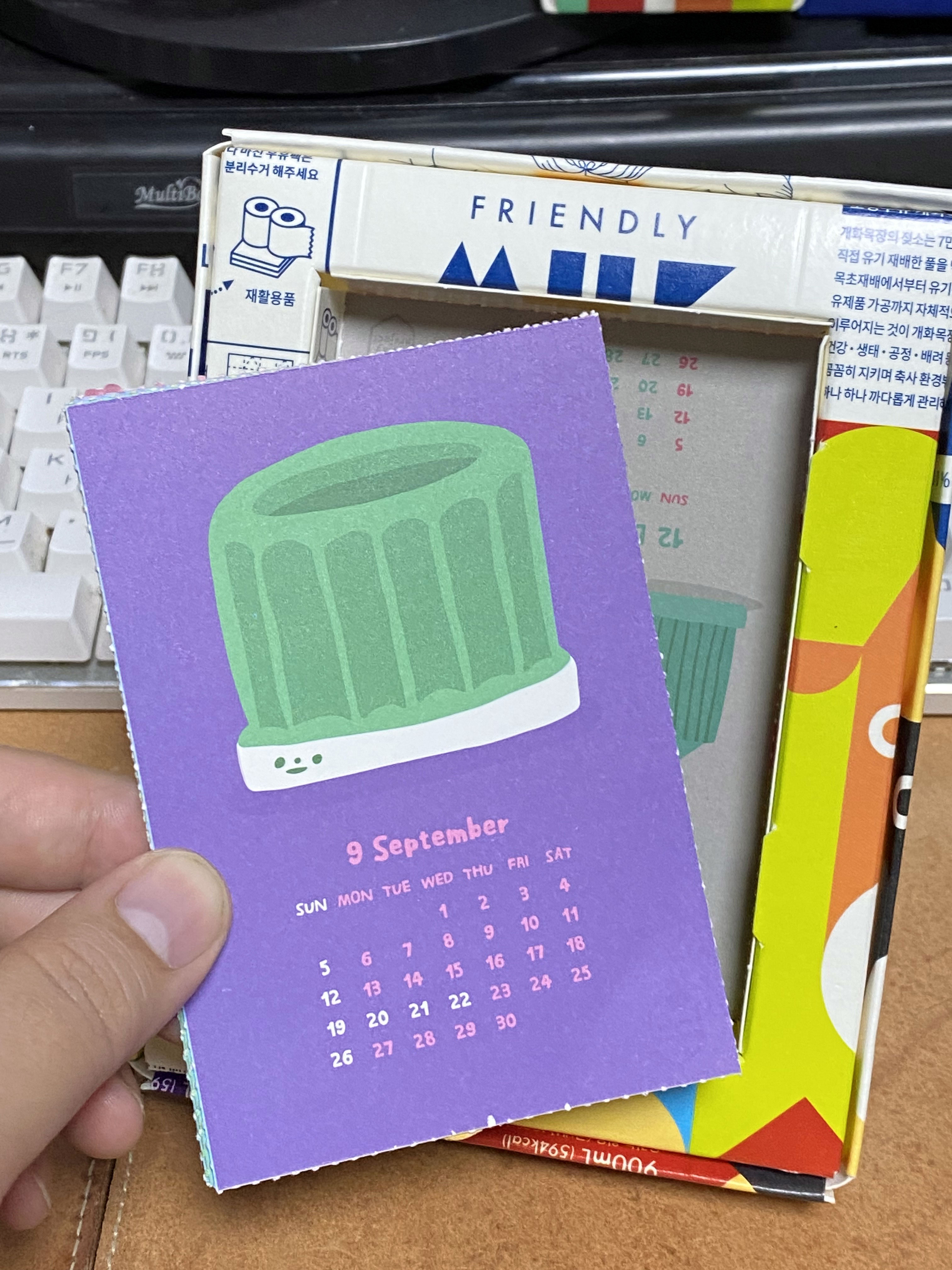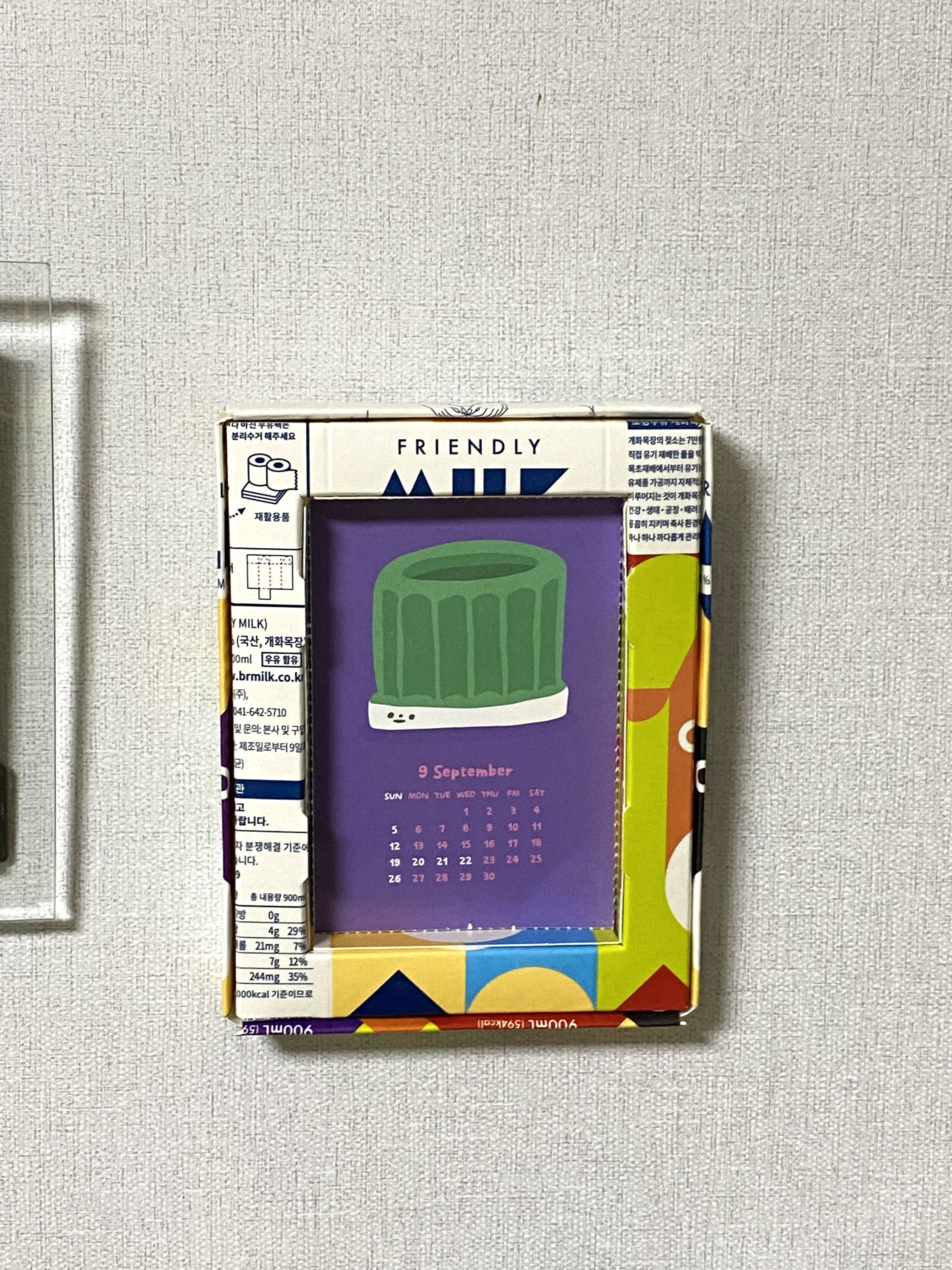 예쁜 캘린더가 들어 있는데 이걸 끼워도 되고, 사이즈에 맞게 사진을 잘라서 넣어도 좋을듯.