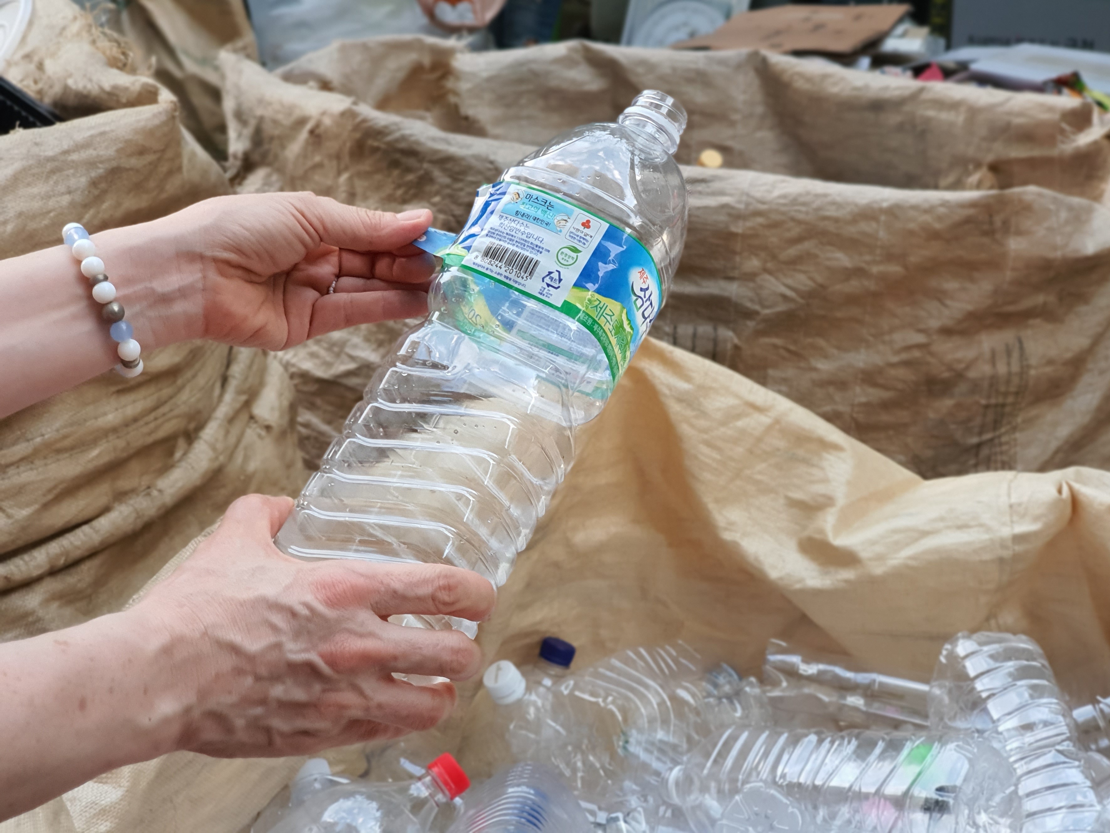 투명페트병은 라벨을 분리해서 버려주었어요