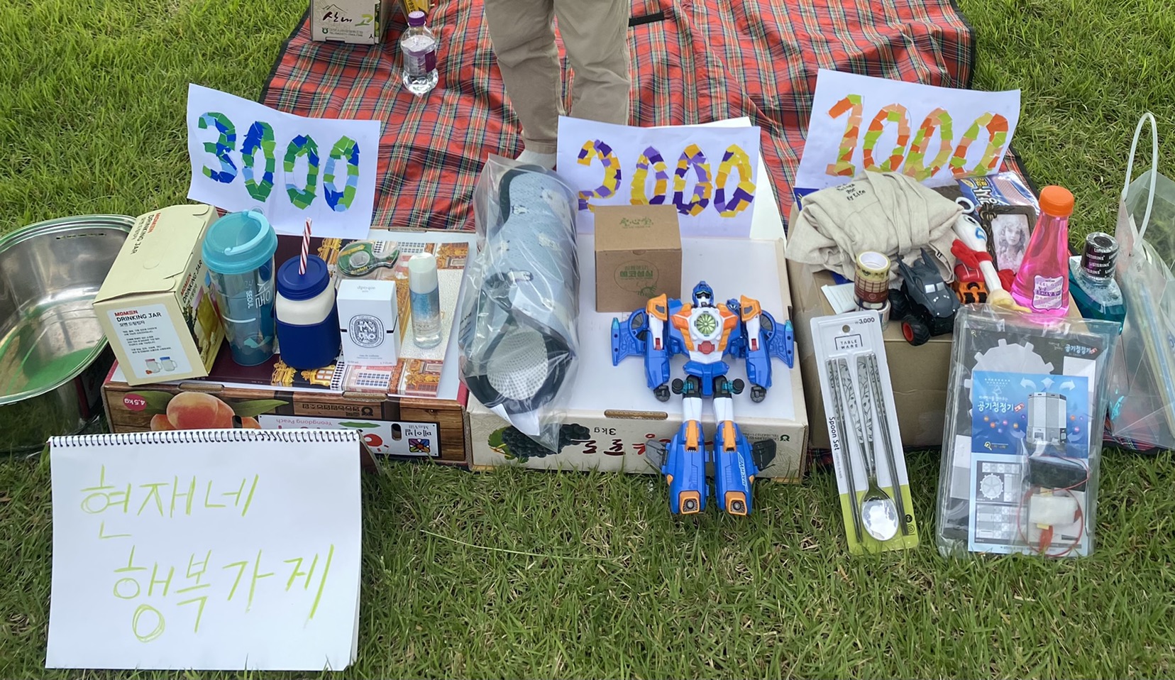 집에 있는 물건 탈탈 털어 유치원 플리마켓 참여하고 왔어요.
