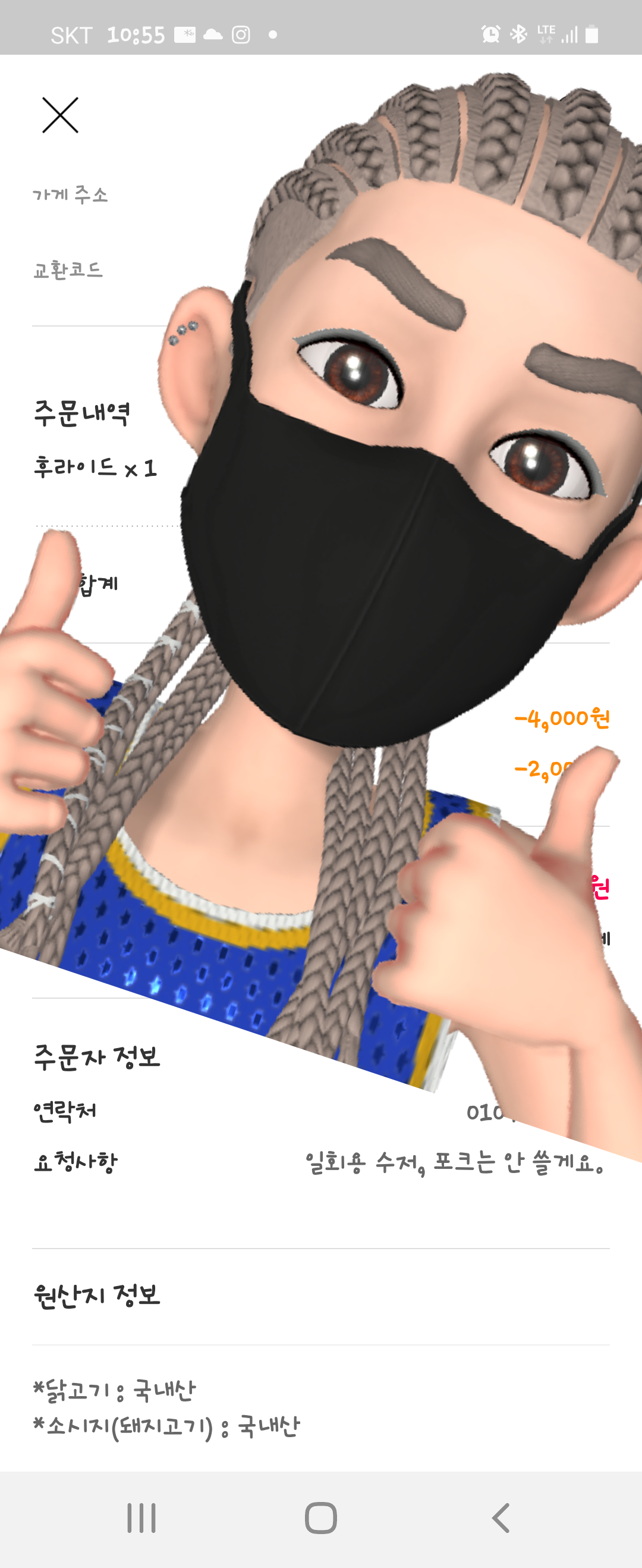 제 배달어플에 이미 지정 되있는 배달할때 일회용 수저,포크 안쓸게요~~~