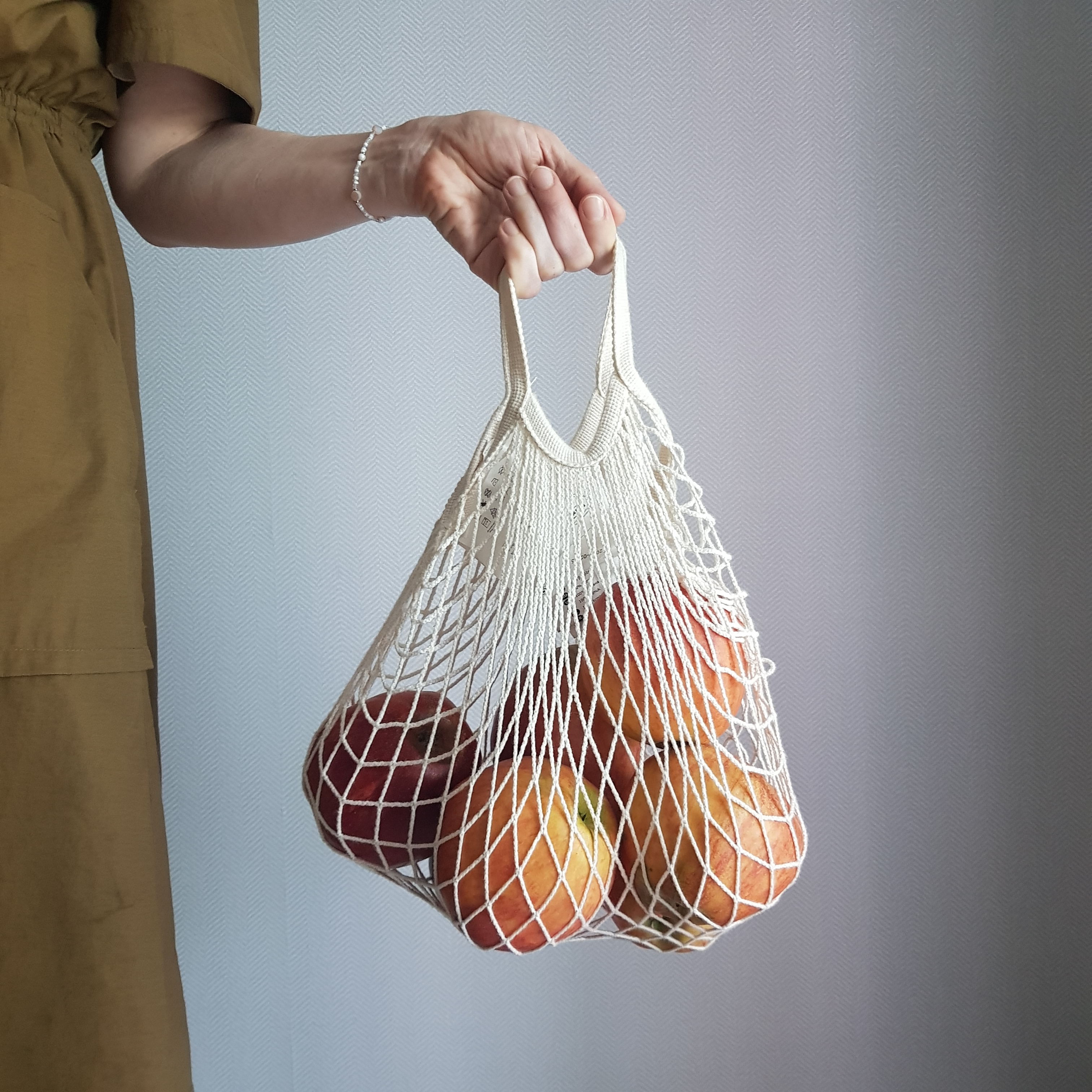 비닐을 최대한 사용하지 않기 위해서 장바구니는 항상 들고 다녀요 과일을 살땐 이 그물방 장바구니를 쓴답니다
