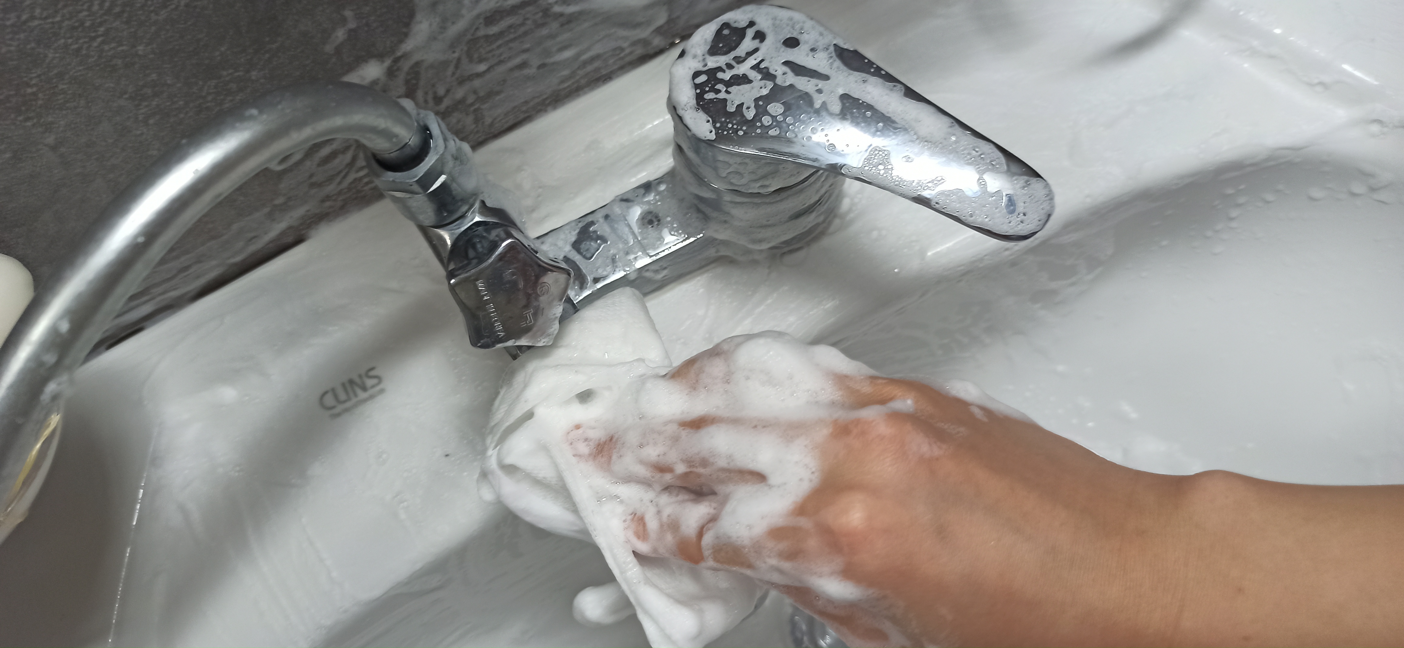 버리자니 거품이 잔뜩묻어있어 아깝더라구요 수전 닦아봤어요