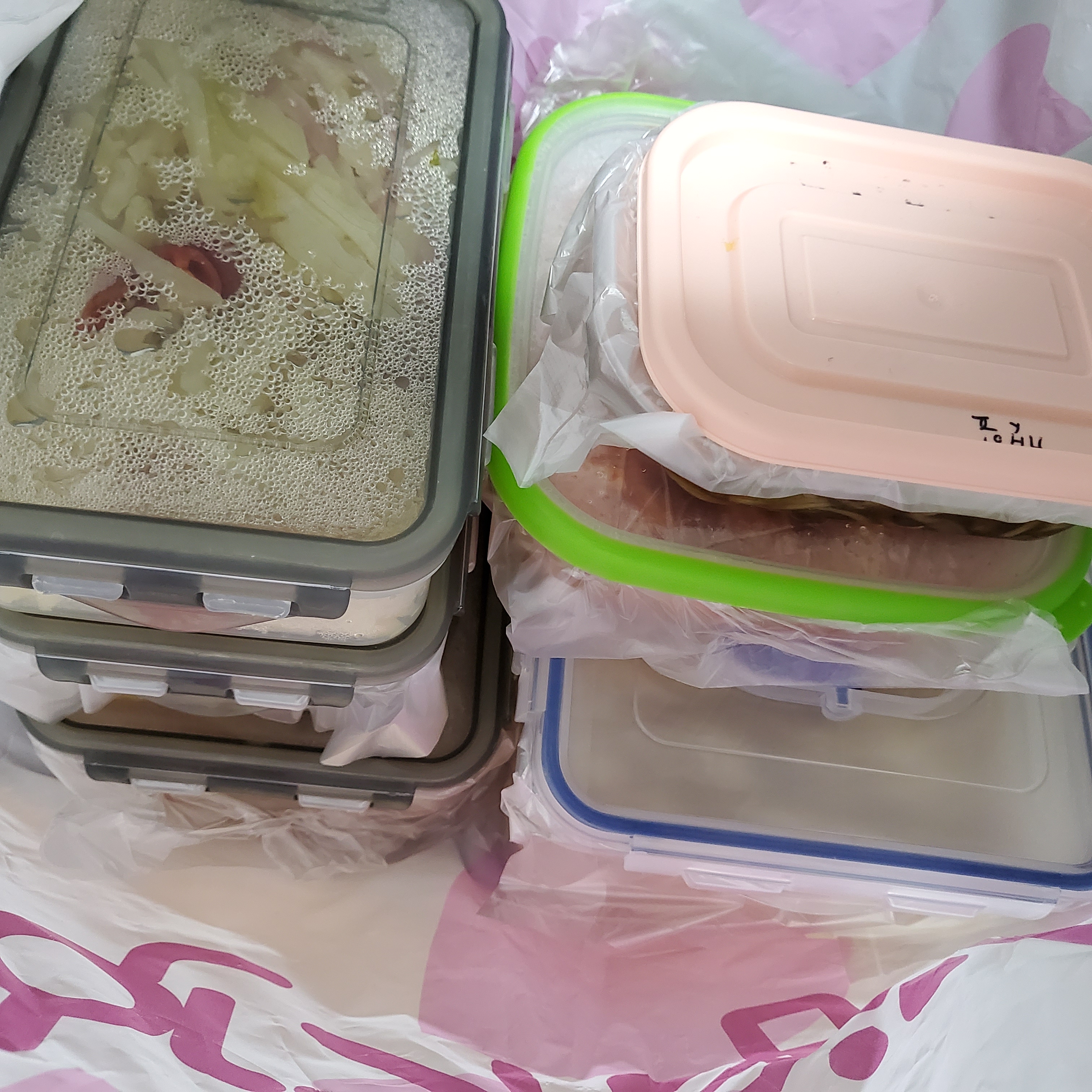 요즘 한참 고구마 농사로 바쁘신 시댁 부모님위해 밑반찬 용기에 담아 용기내반찬과 간식으로 드실 라면땅 보내드리려고 준비했어요~~