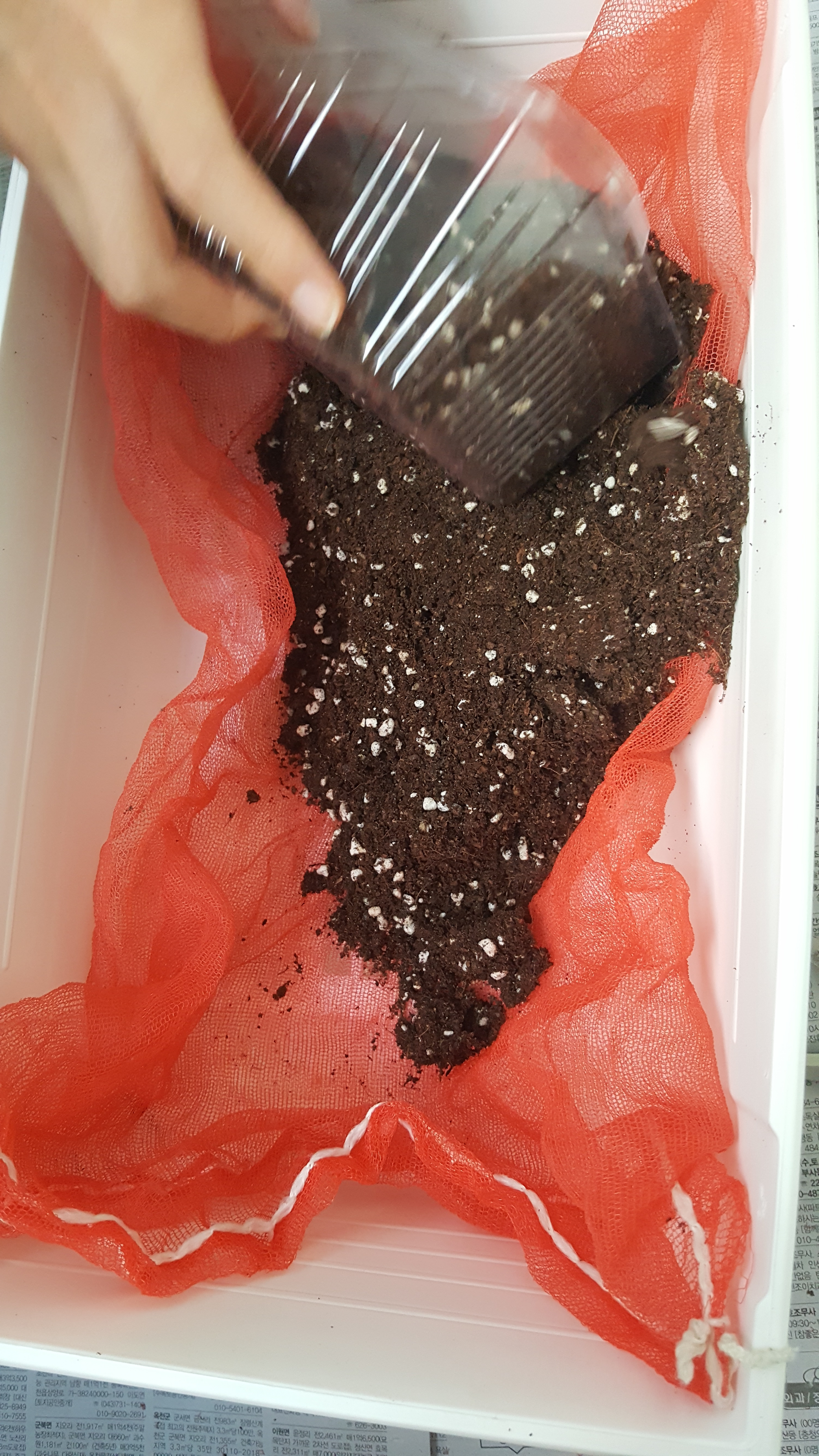 양파망을 화분 거름망으로 재사용해요.