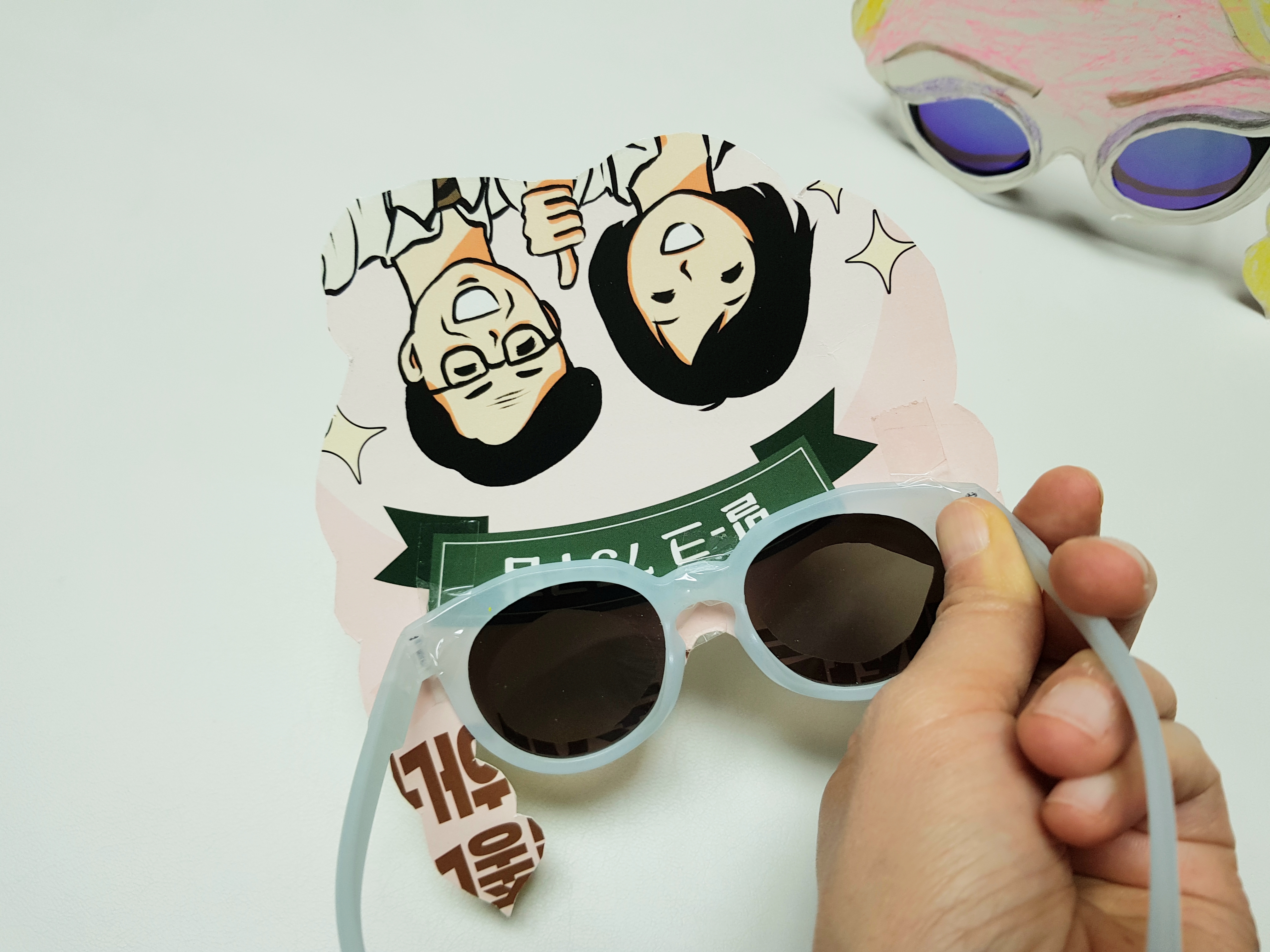 안경에 붙여서 쓰기도 편하게 만들었죠.