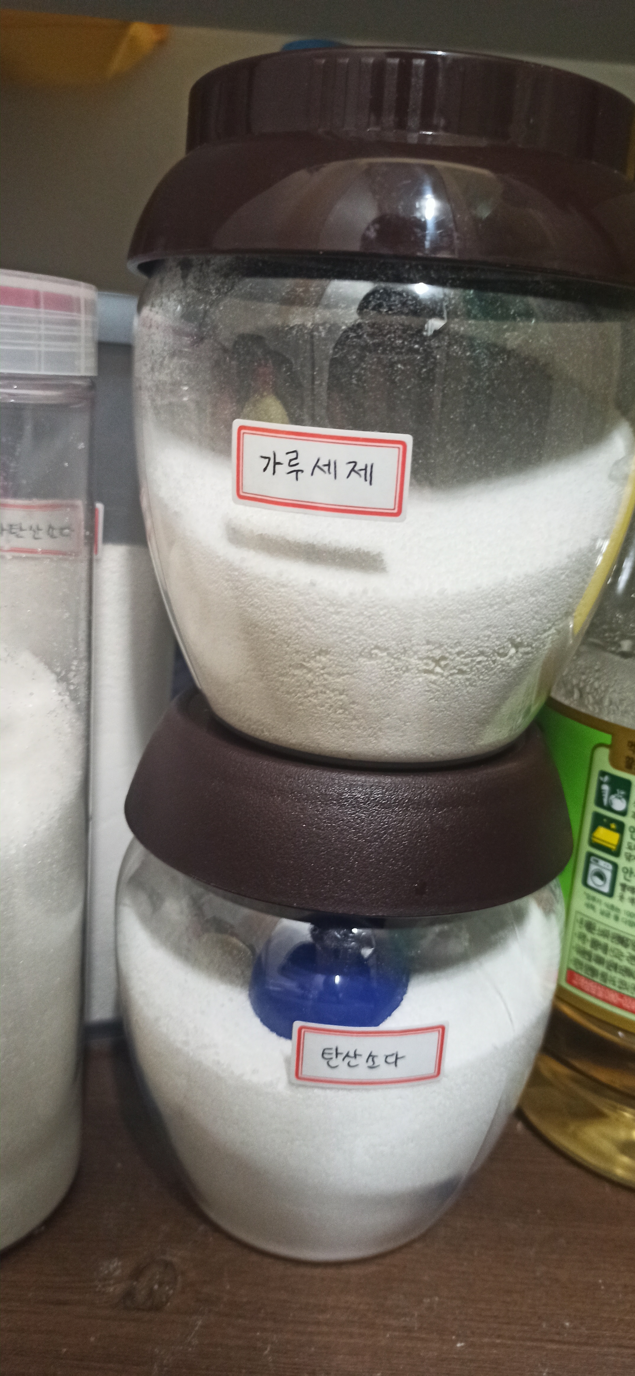 입구가 넓은 된장통으로 세제보관했어요