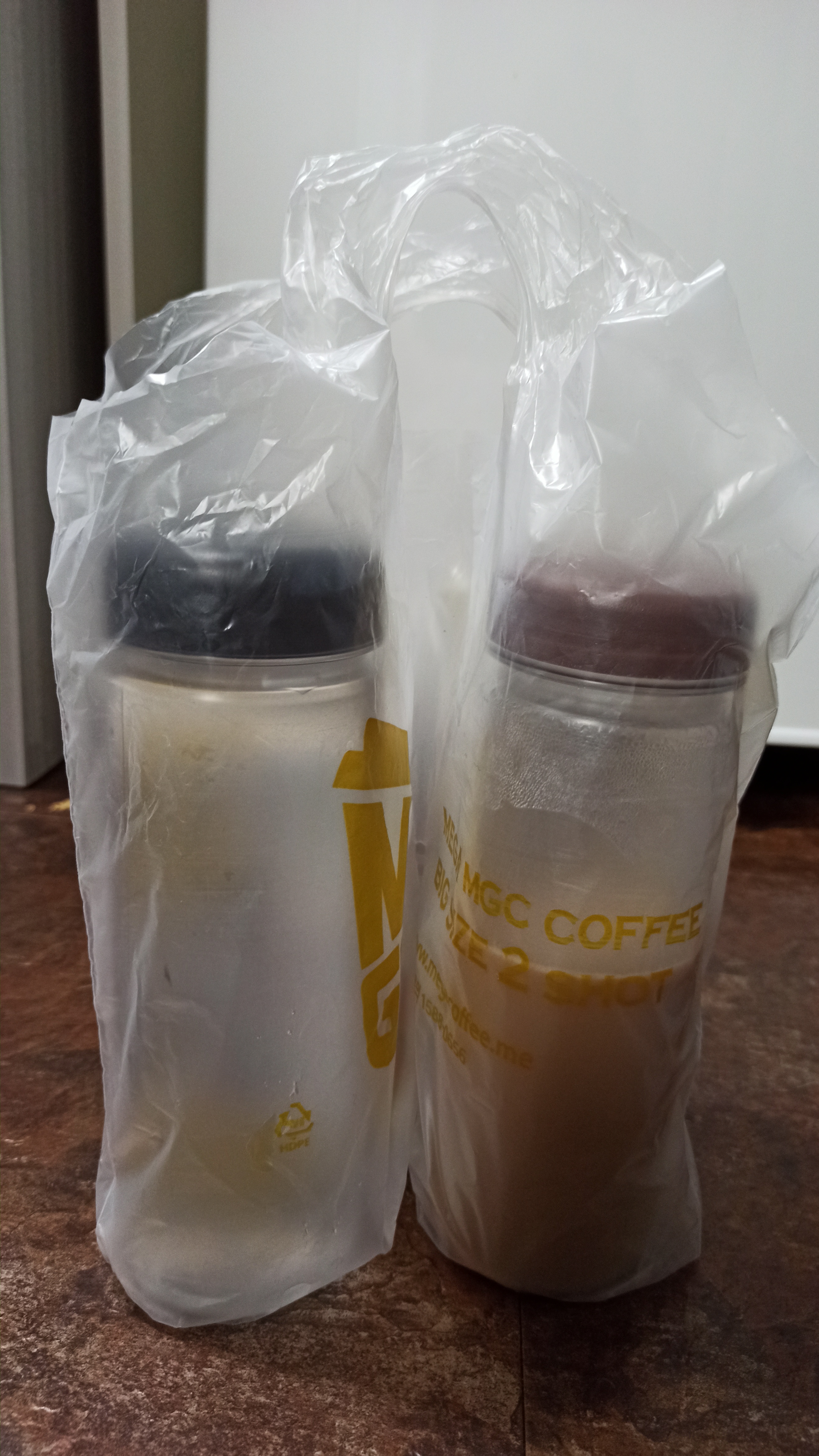 커피 테이크아웃할때 받은 비닐로된 캐리어에 넣으니