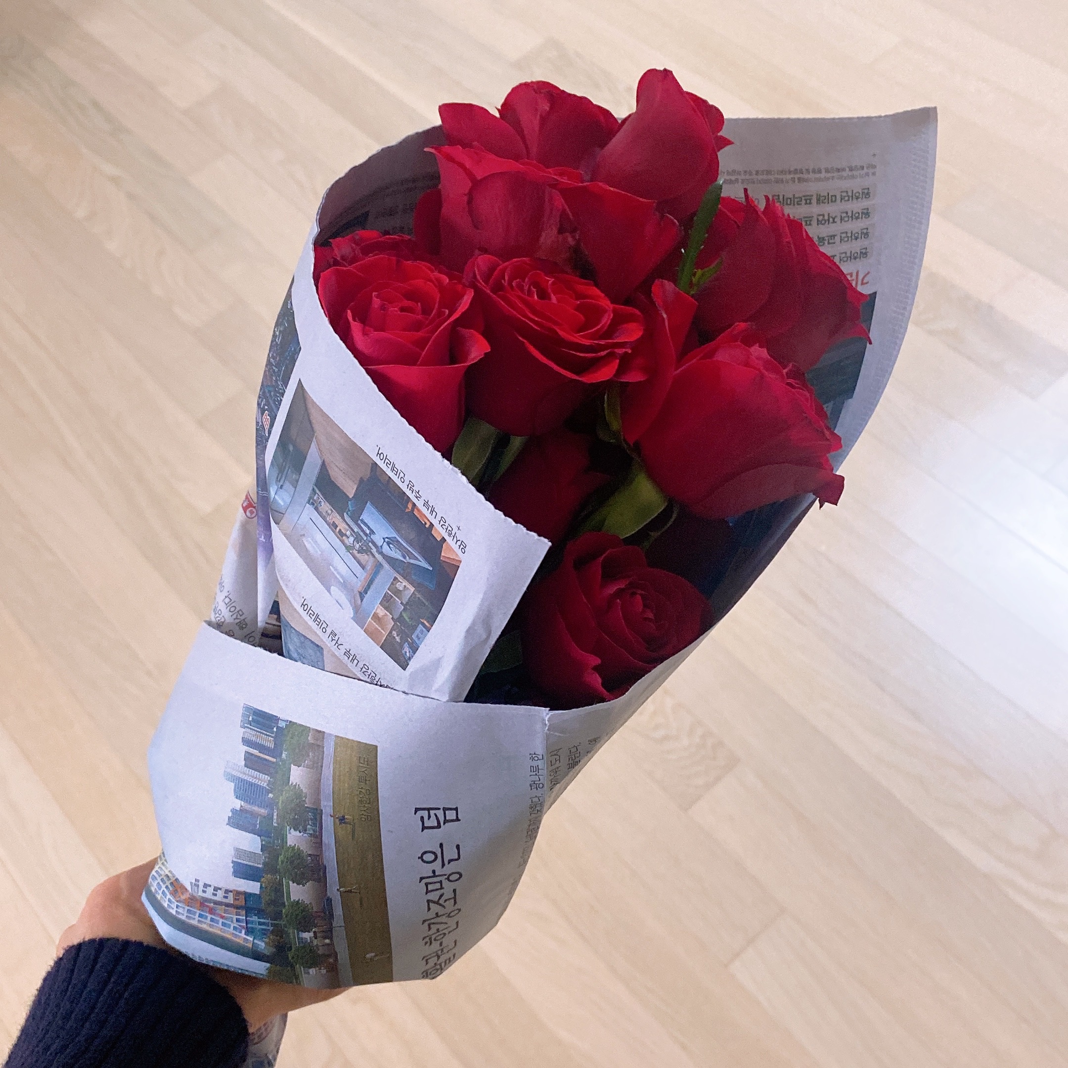 제가 사는 꽃에는 항상 포장을 간소화하려고 노력합니다. 꽃집에 가서 포장 없이 알맹이만 가져오기도 하고, 가볍게 신문지에만 두르는 경우도 있어요