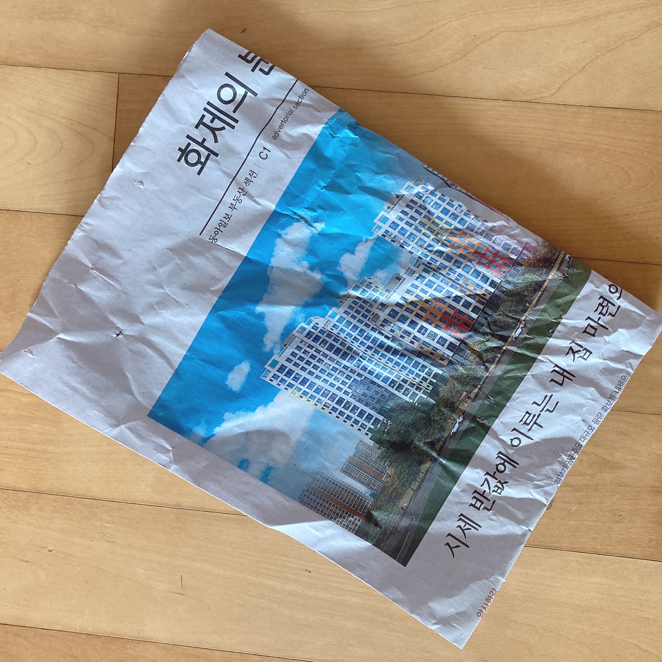 감싸왔던 신문지도 바로 버리지 않고 한번 더 재사용을 위해 고이 잘 접어둡니다^^