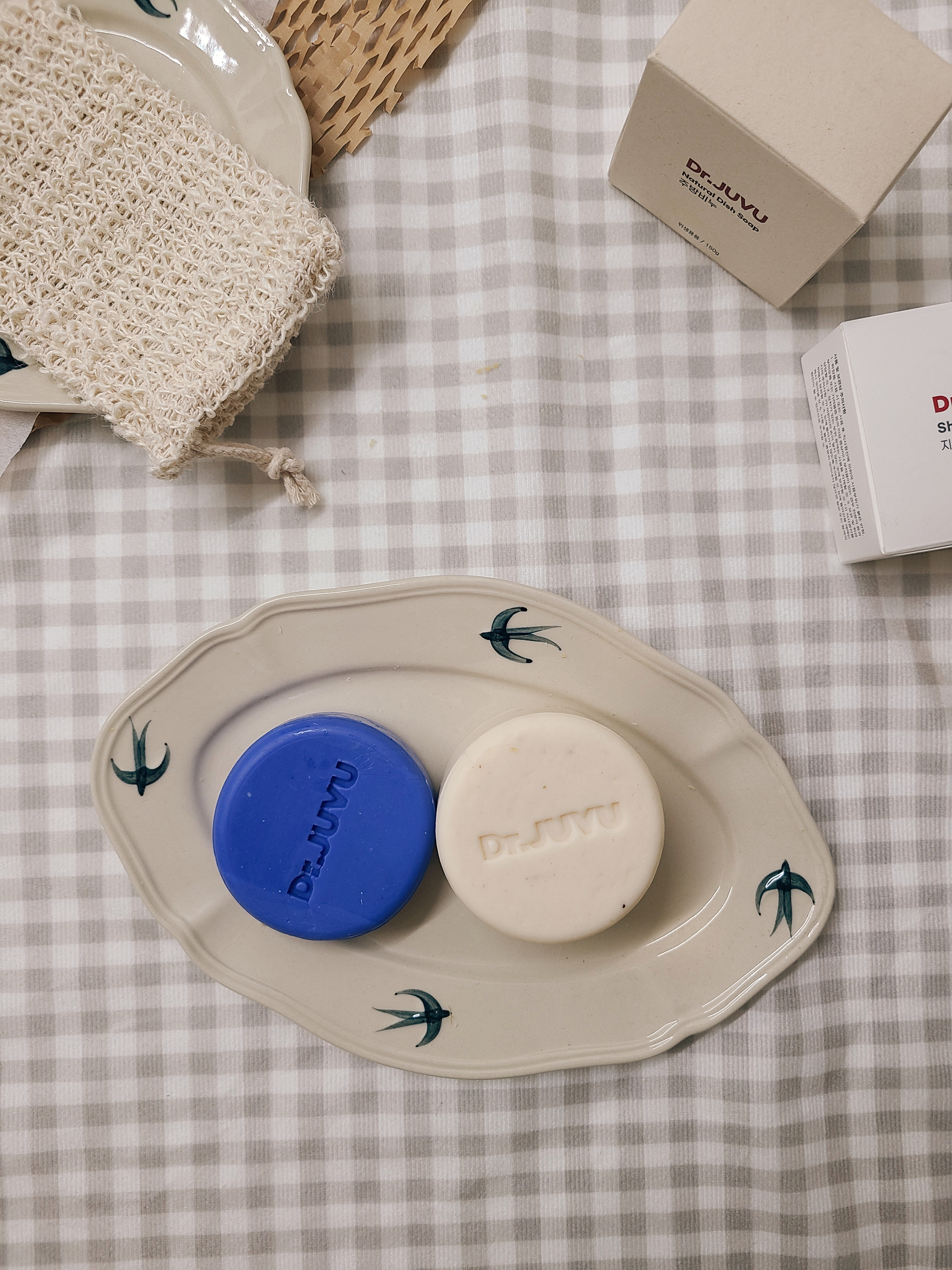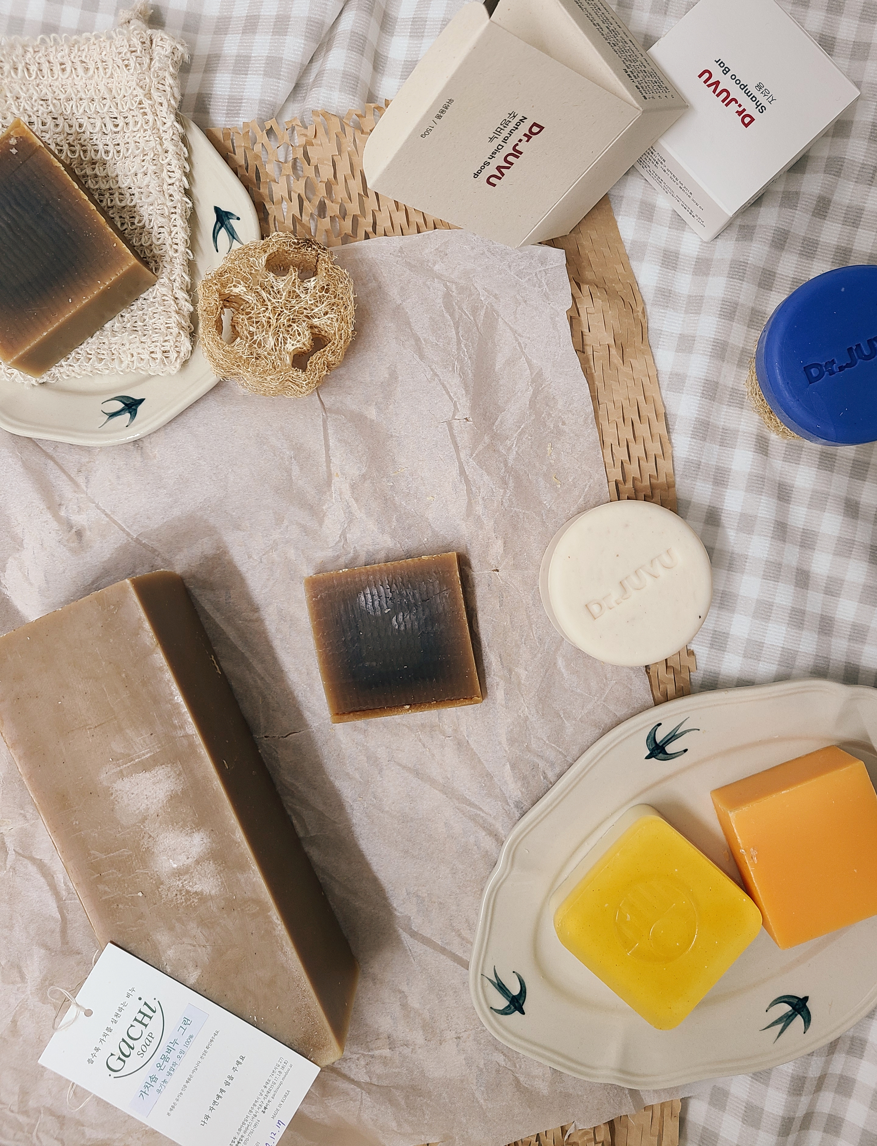 이전에 천연수세미 적응기에서도 보여드린 것처럼, 이번에 새로 구매한 비누들도 천연수세미로 받침대를 비치해두었습니다!