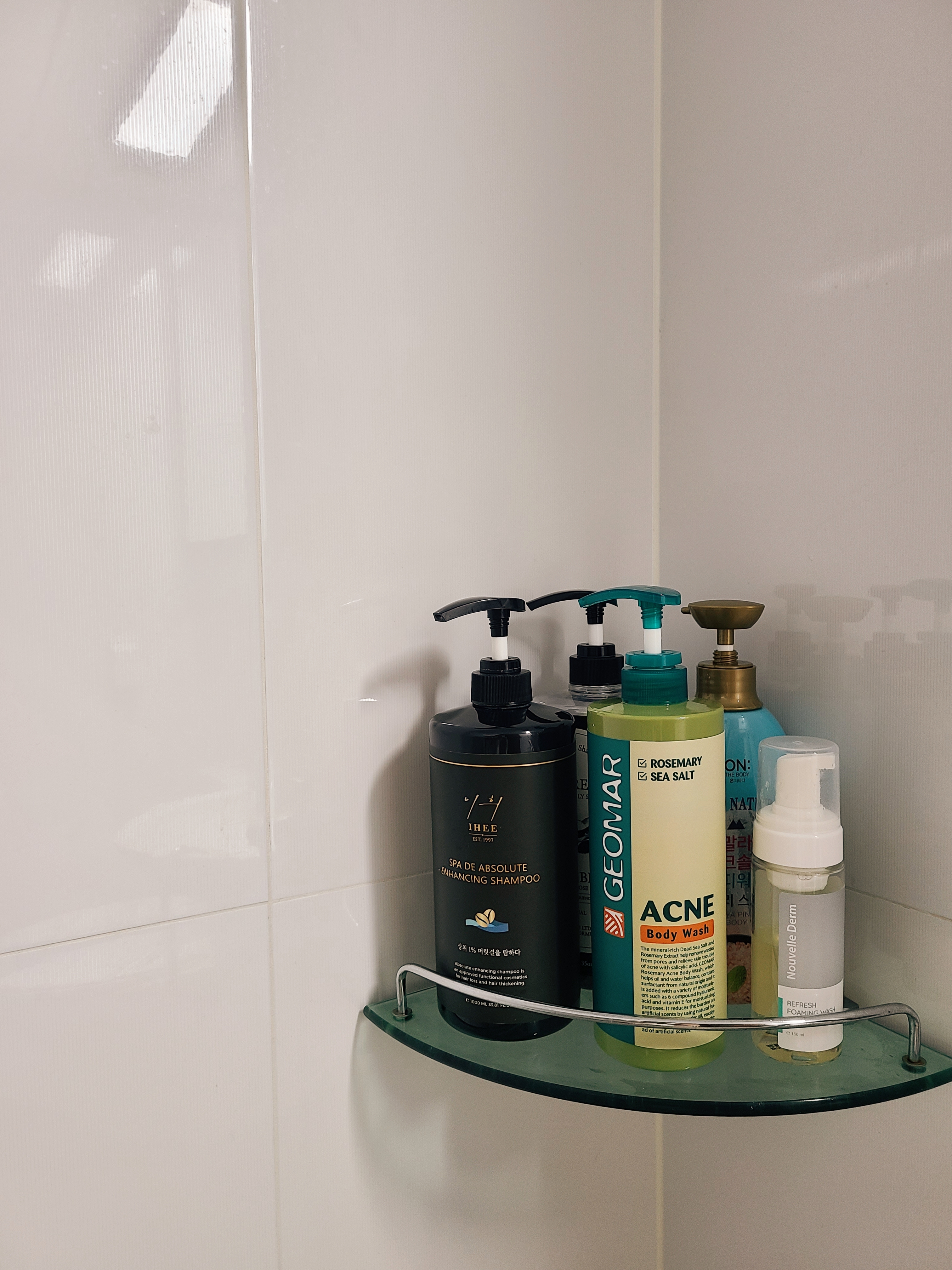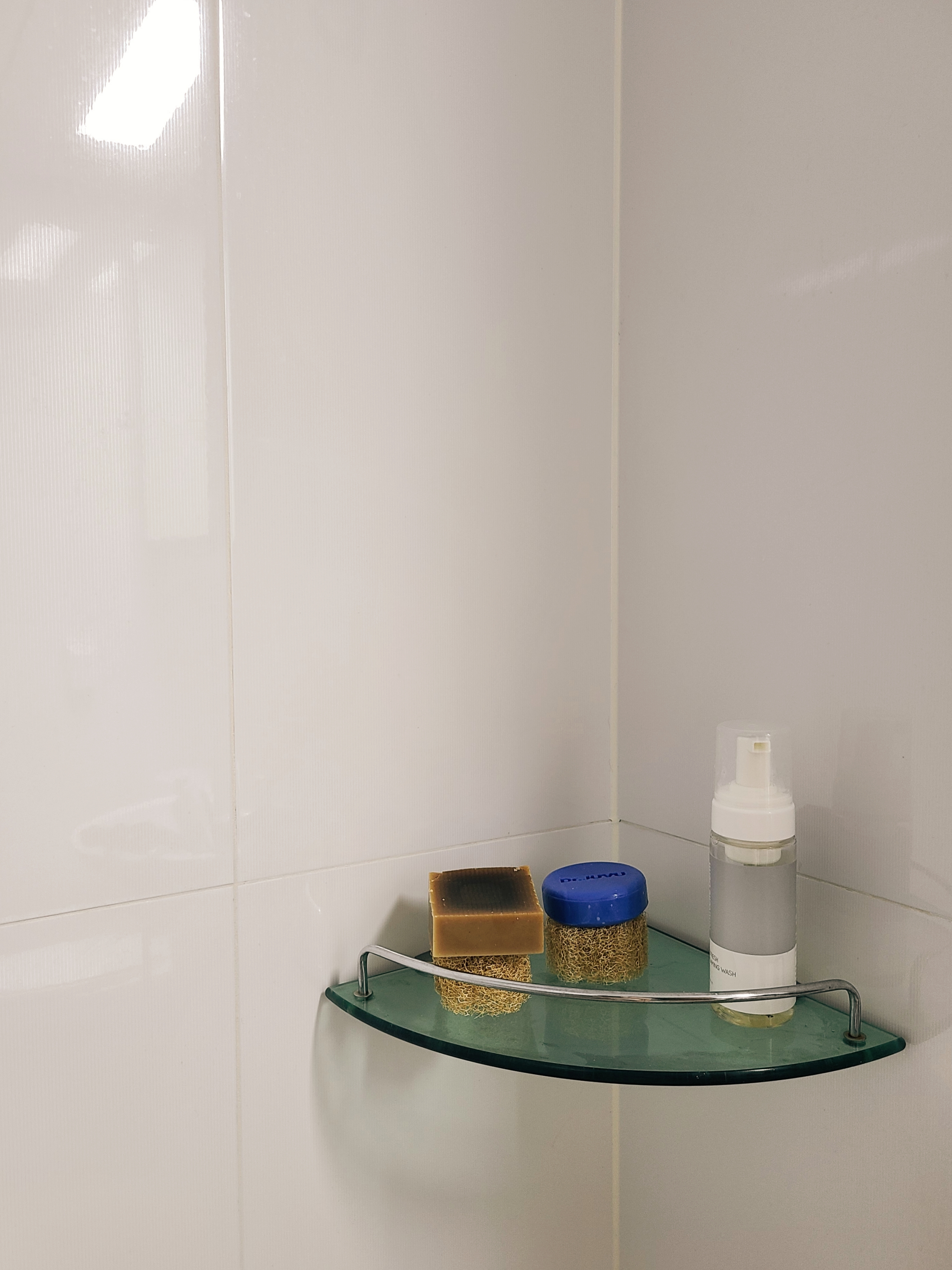 이번에 다 사용한 제품들을 정리하고 새로 구매한 고체비누로 새로 세팅을 해보았어요. 이전보다 훨씬 간소화되서 화장실 청소하기도 훨씬 편해보입니다 :)