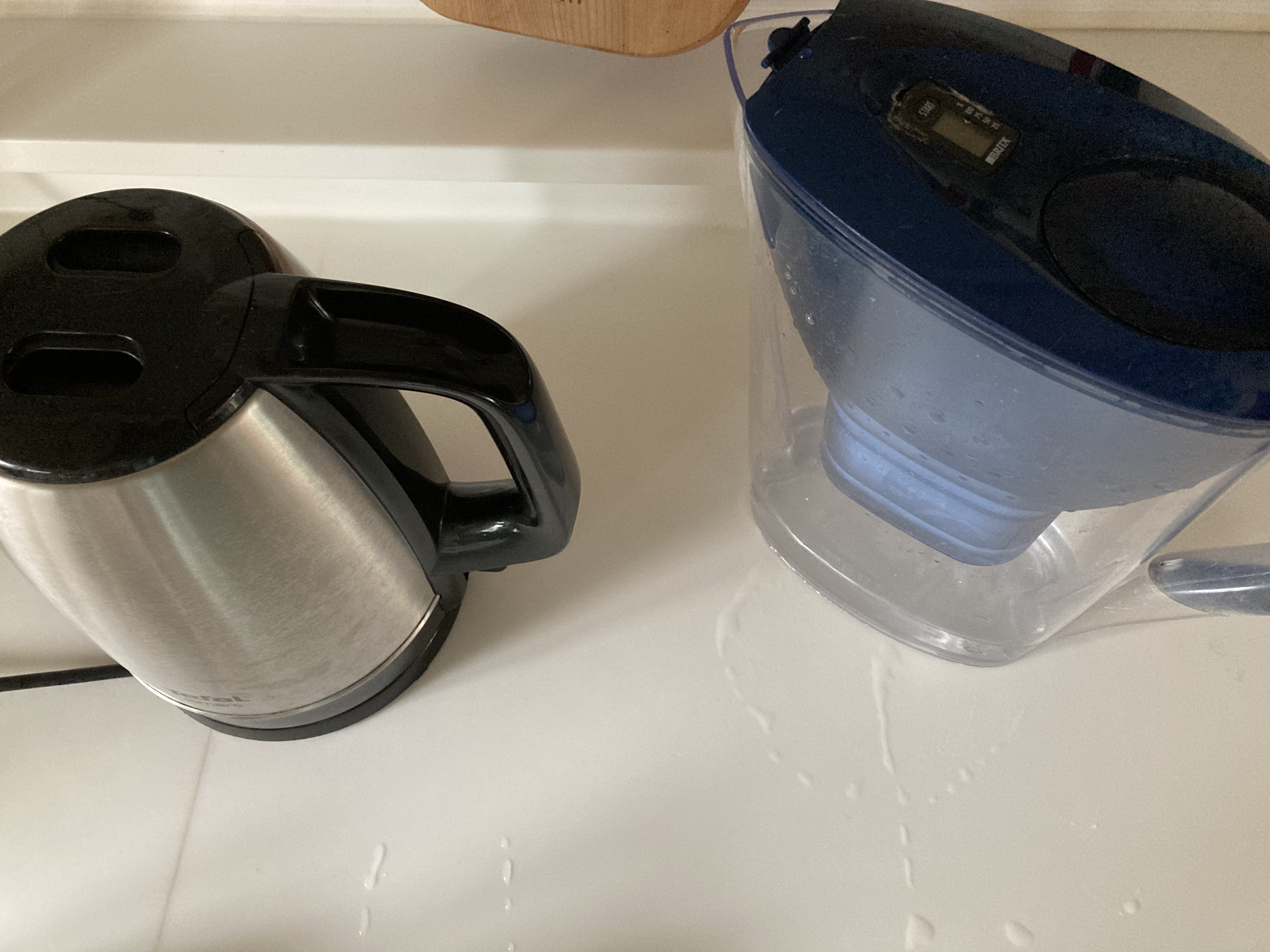 먼저 브리타 정수기로 플라스틱 생수병 없이 물을 정수합니다.