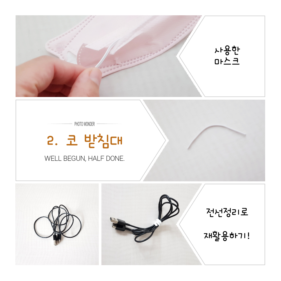 하루에 하나이상 버려지는 마스크~그 안에서 코 받침대를 꺼내 전선정리로 재활용하고 있어요~♡