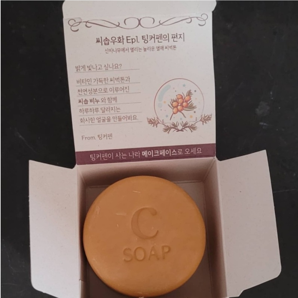 메이크페이스 씨솝우화 세안비누는 비타민이 레몬보다 3배 풍부한 씨벅톤을 다량 함유하고 있어요.