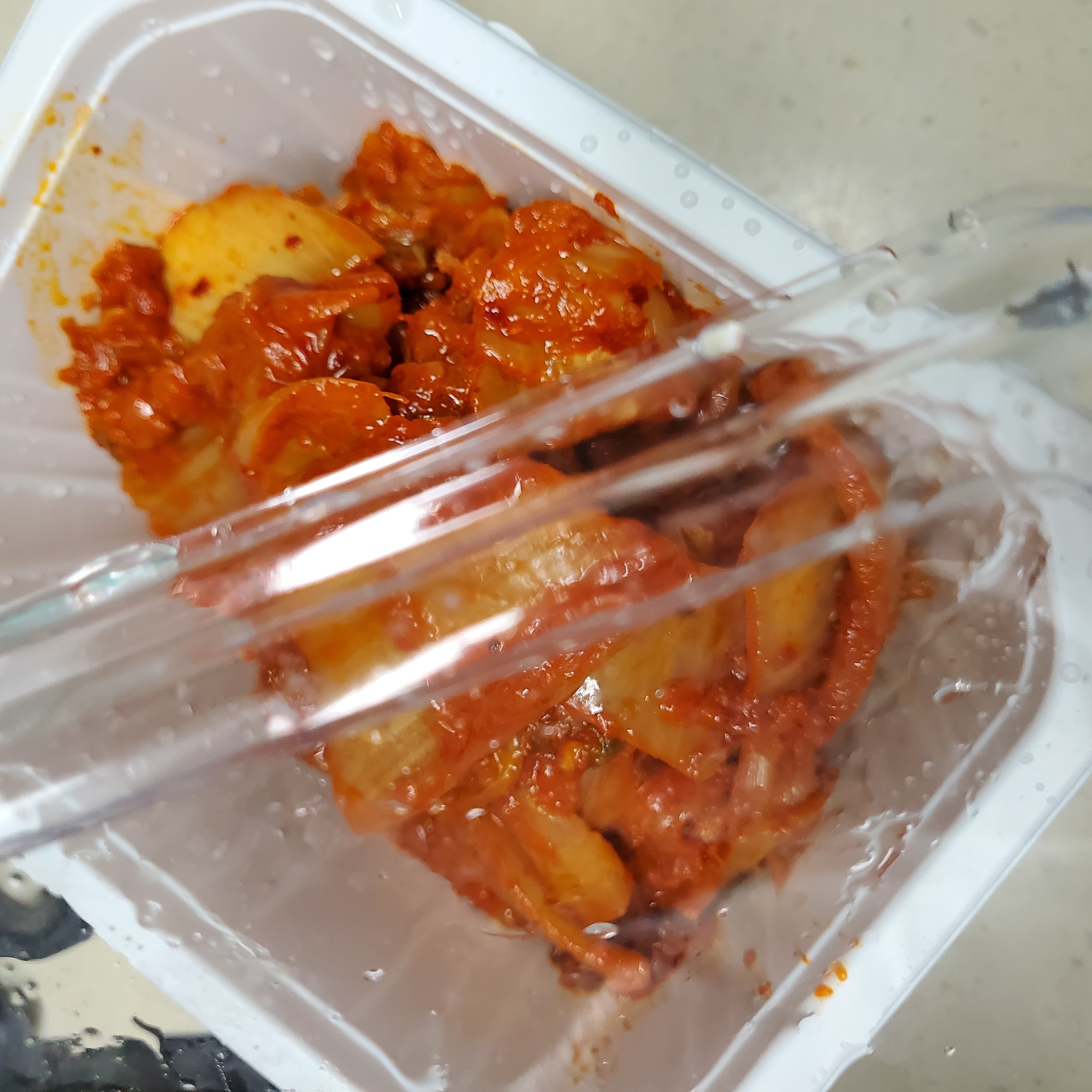 유명한 손두부집 두부 나오는 시간에 사서 두부 먹고 깨끗한 용기 버리지않고 씻어서 손두부 먹을때 볶아 먹고 남은 김치 담아 보관하고 있죠