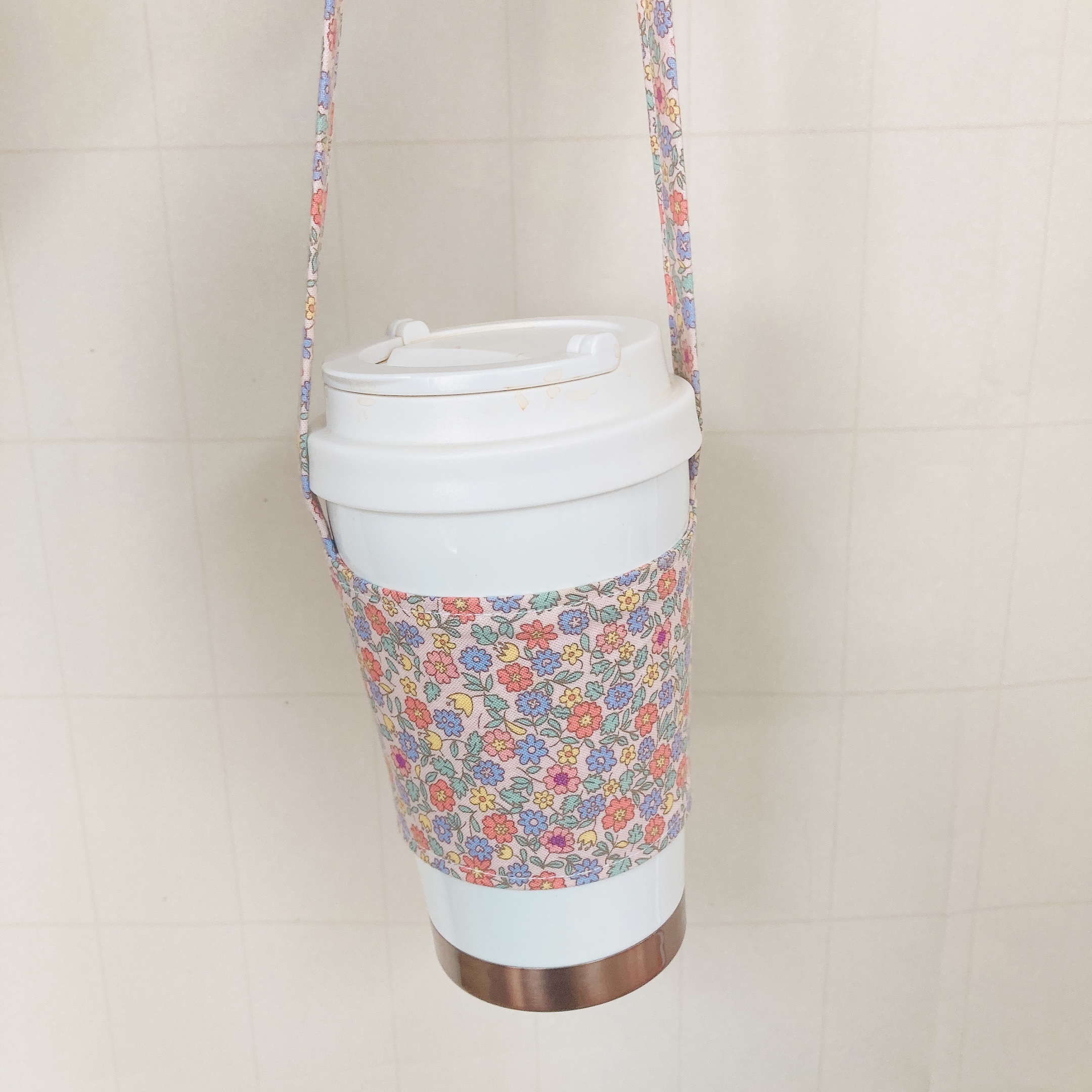 완성!!텀블러에 맞추어 쏘옥 간편하게 넣고 끈을 손목에 걸거나 손으로 잡으면 되니 텀블러 사용횟수가 훨씬 늘었어요^^ 이쁨은 덤입니다~