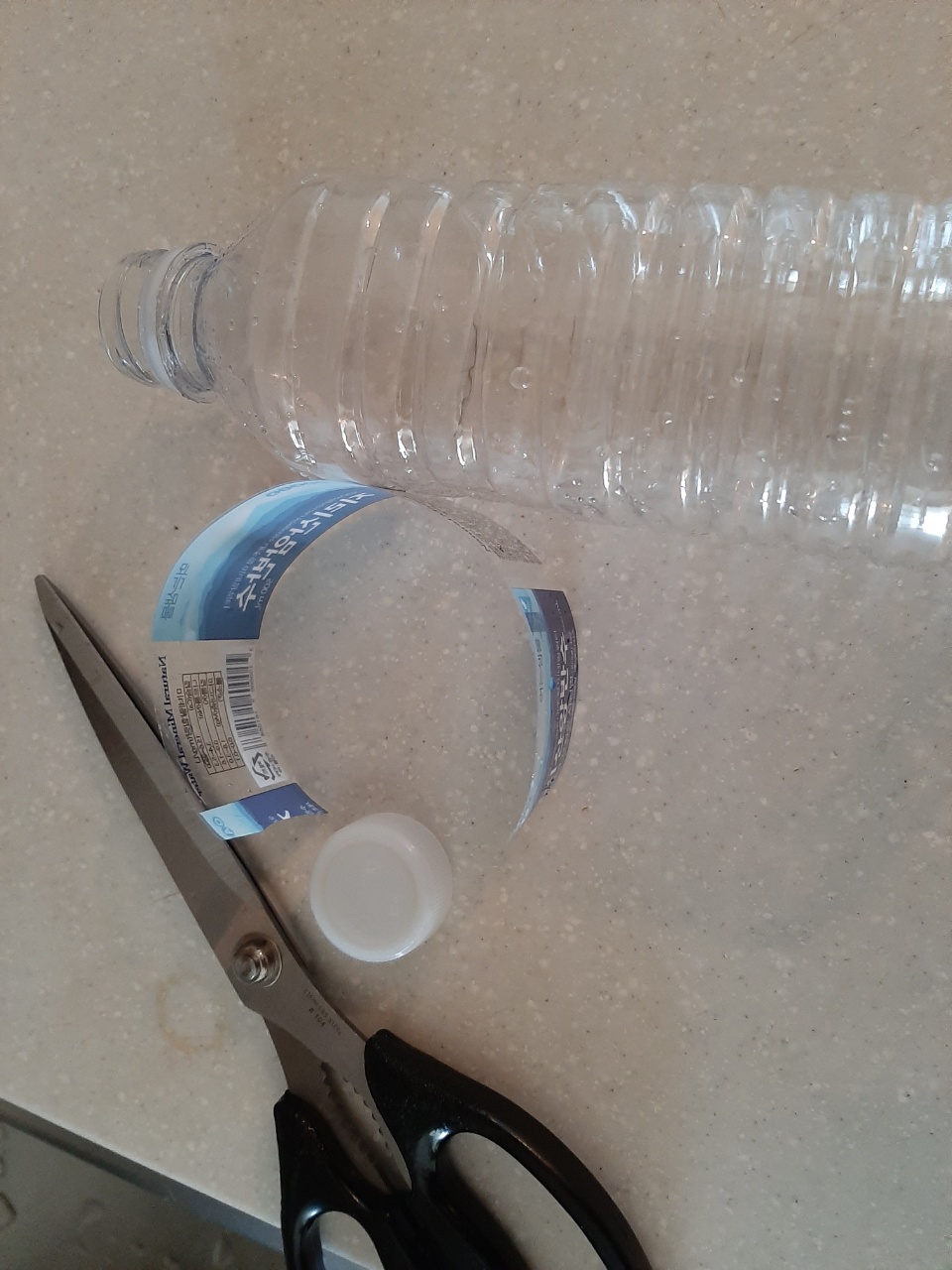 가족들이 회사에서 먹고 가져온 생수병들이 나오네요……