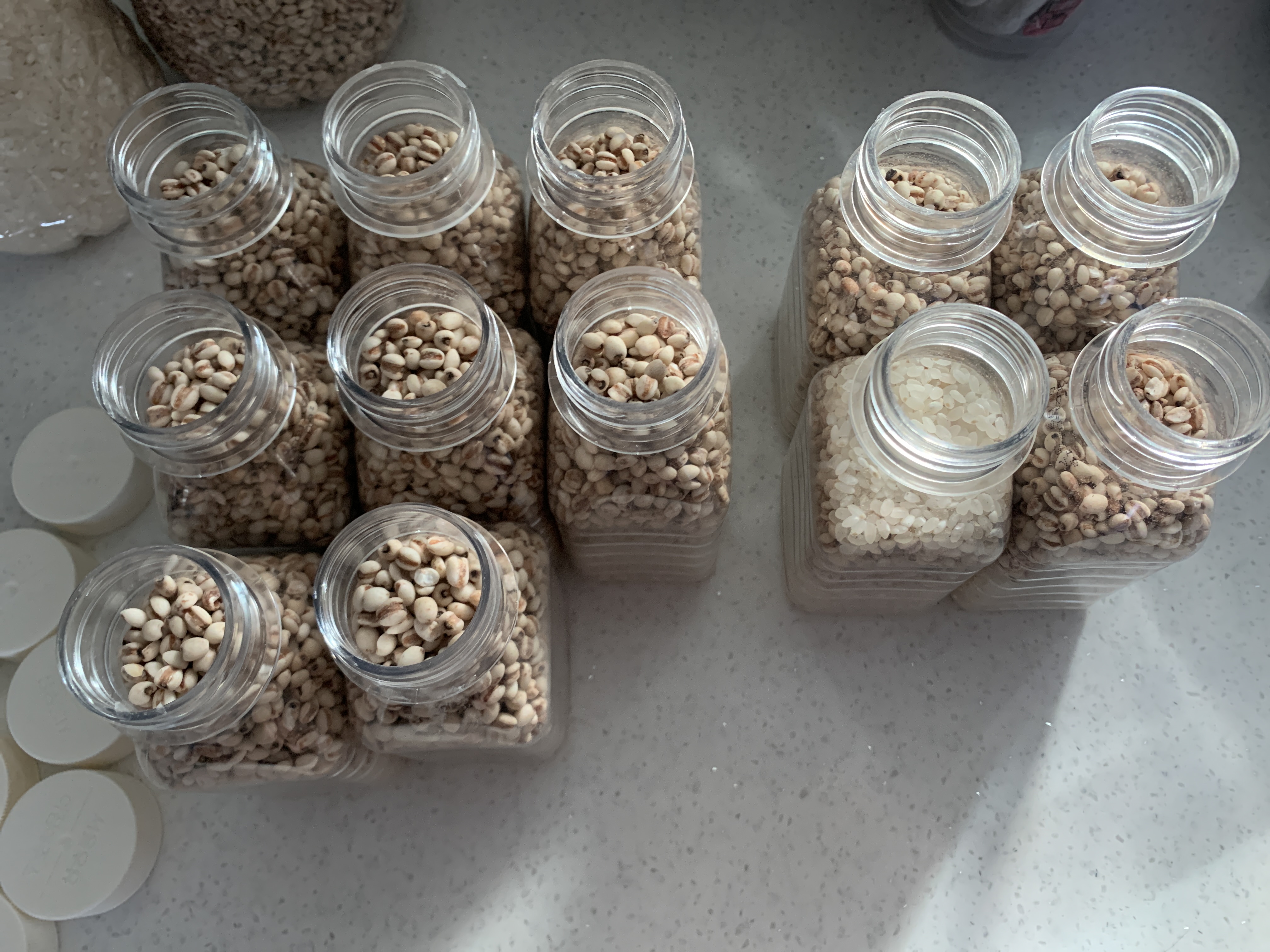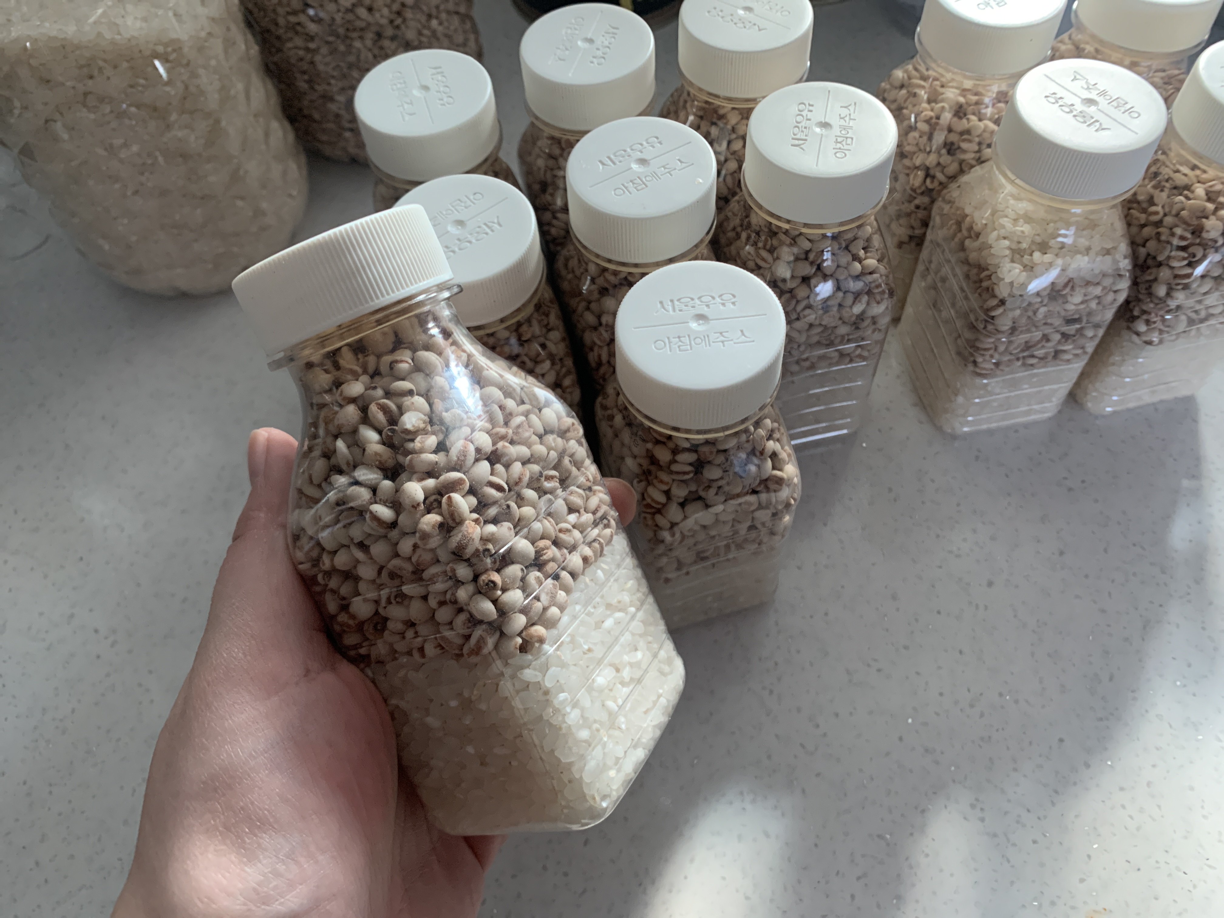 착착착 백미 담고, 율무담고