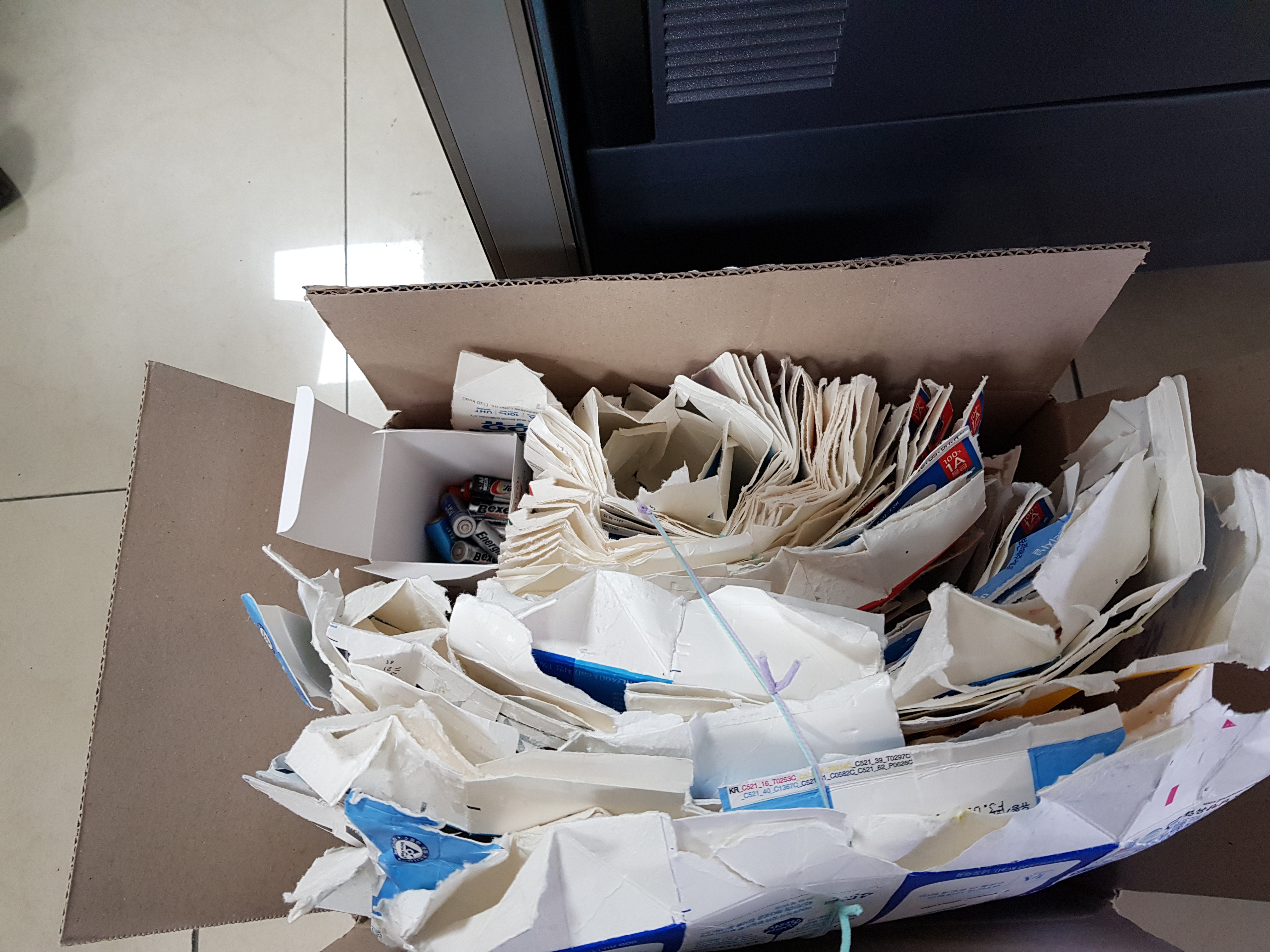 우유팩 2키로 모아서 화장지로 교환하러 가면서 폐건전지 20개도 함께 가져갔네요