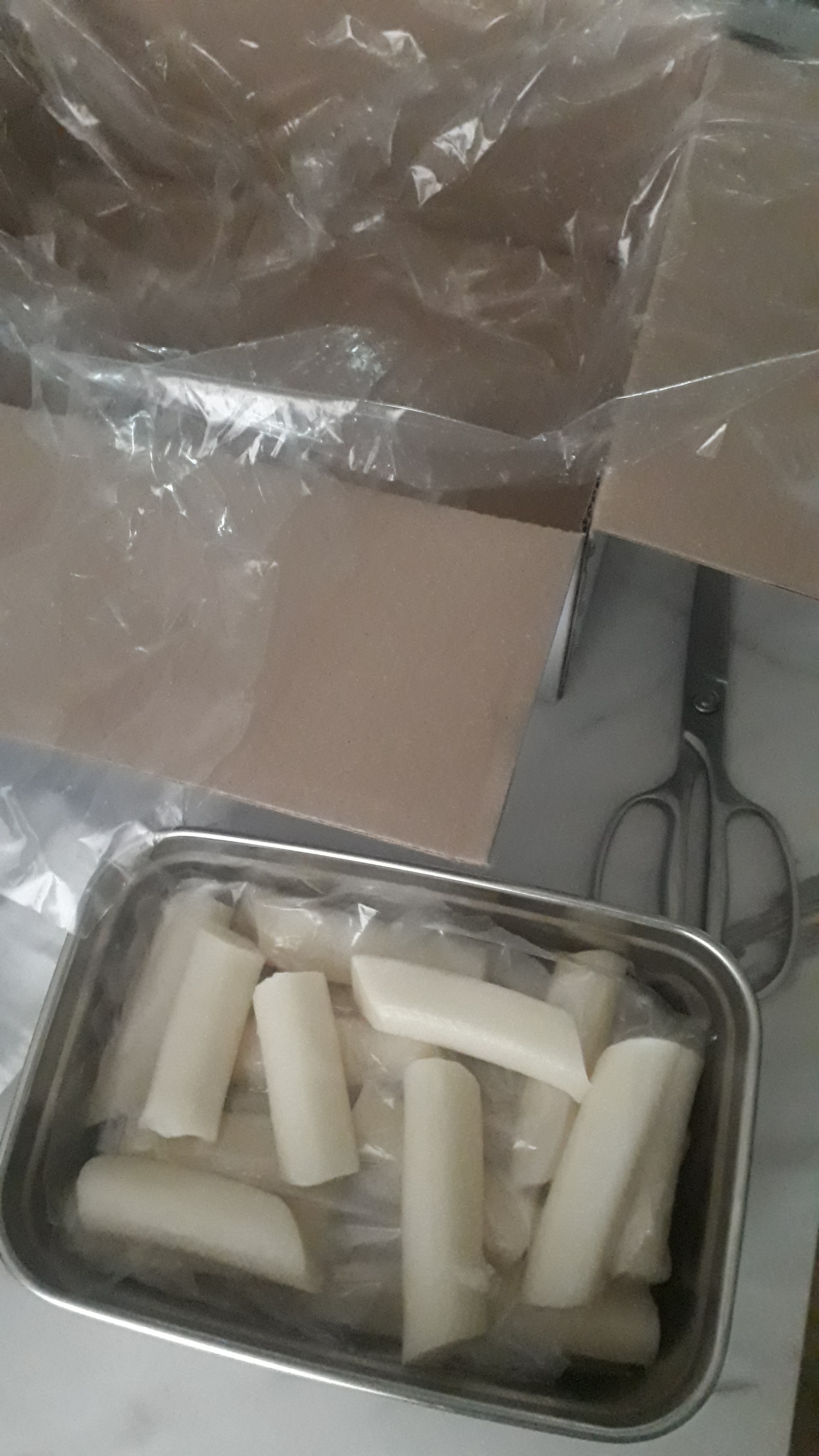 박스에 있던 비닐 잘라서 가래떡끼리