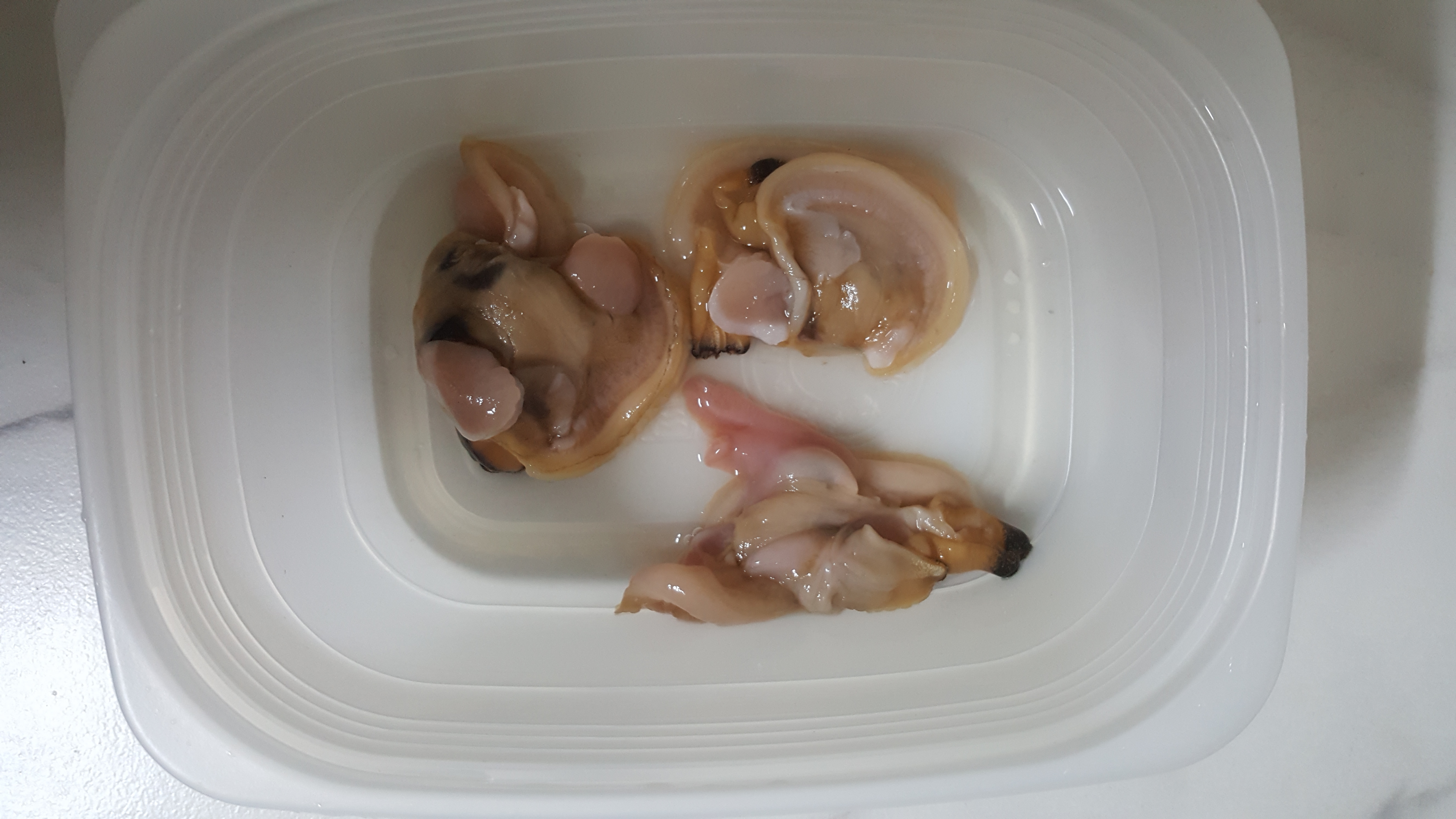 미리 챙겨간 용기에 대합 담아왔어요.