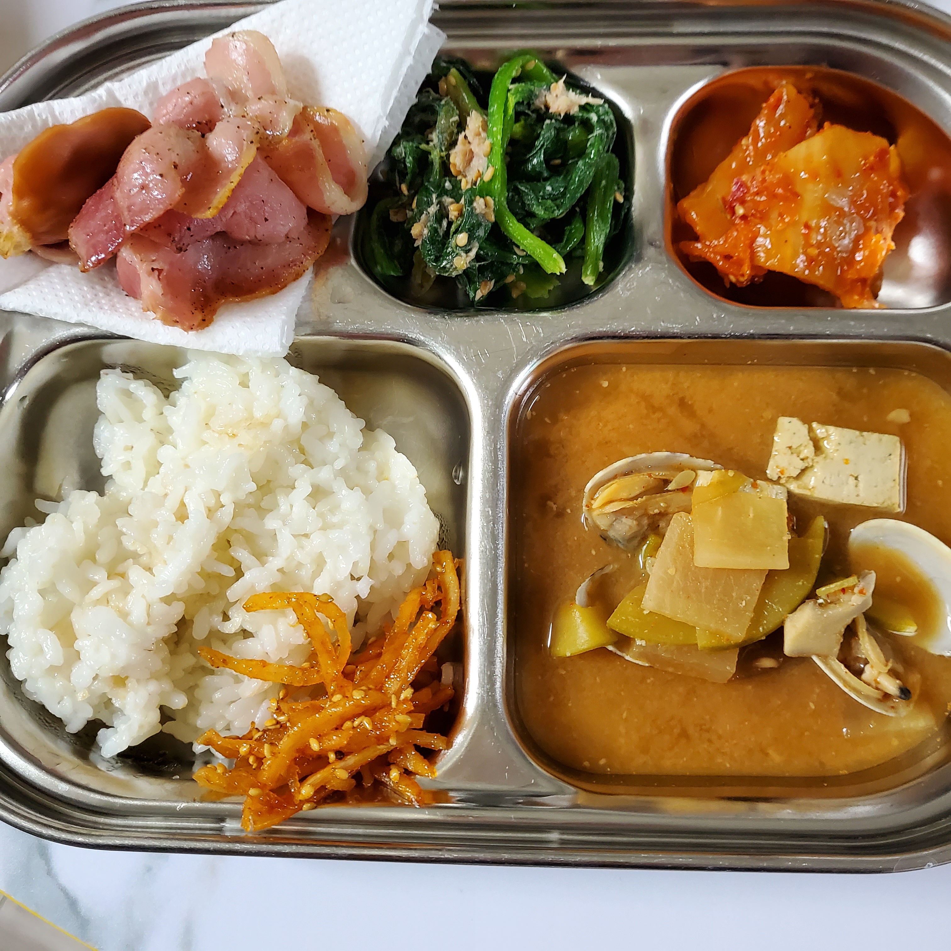 음식물 남는걸 싫어해서 항상 잔반없이 골고루 먹을수 있는 식판 사용하고 있어요