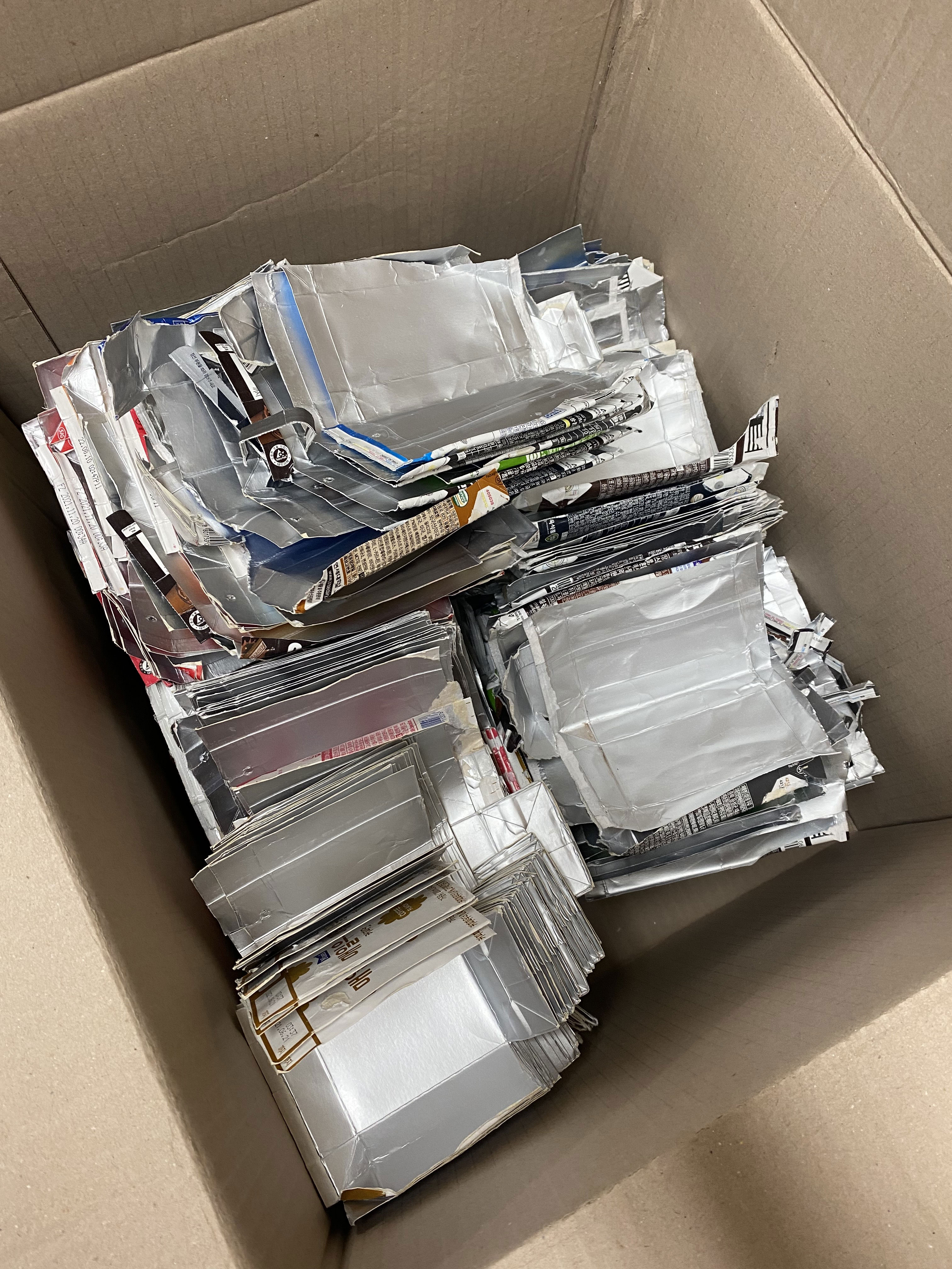 씻고, 자르고, 말리고, 정성스럽게 포장하셔서 보내주시는 아주~ 많은 우유팩을 저희 사무실과 계단에 보관하고 있어요^^;;