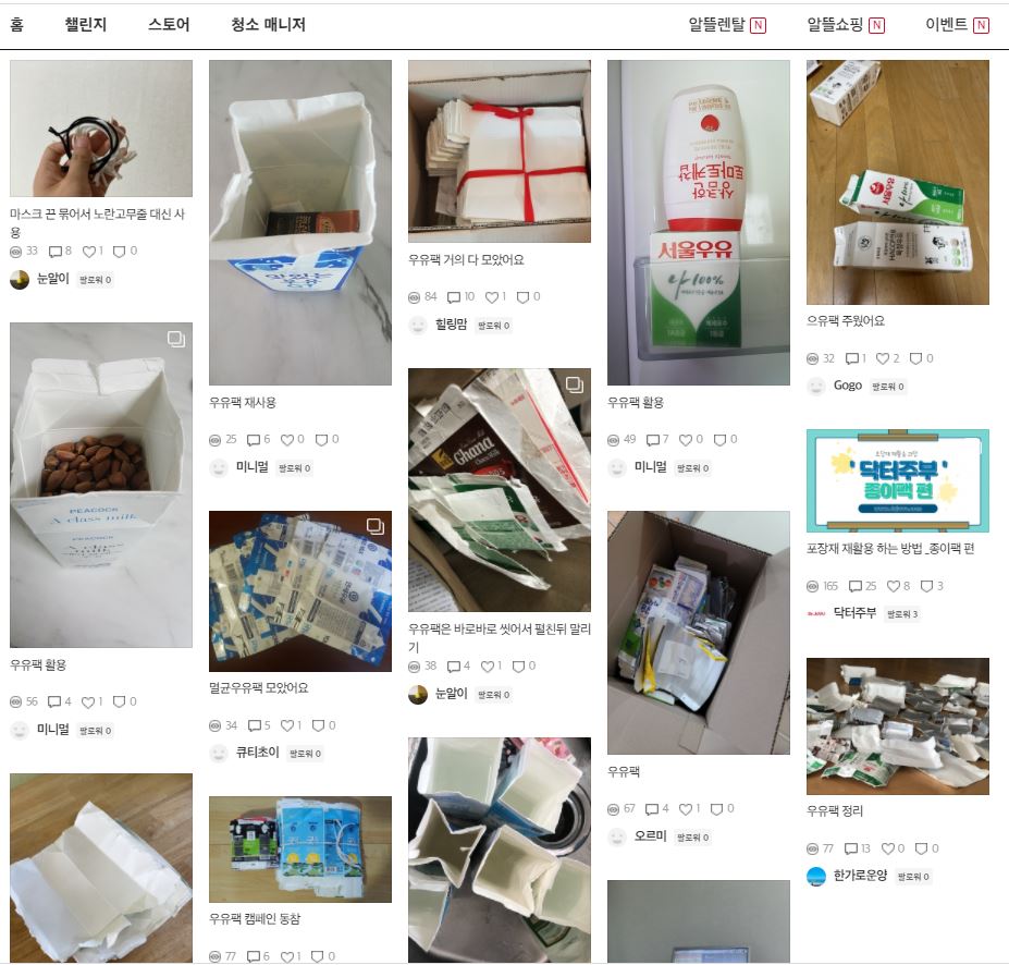 많은 친환경 챌린저분들이 보내주시는 우유팩이 이렇게 많이 모이고 있어요~^^~