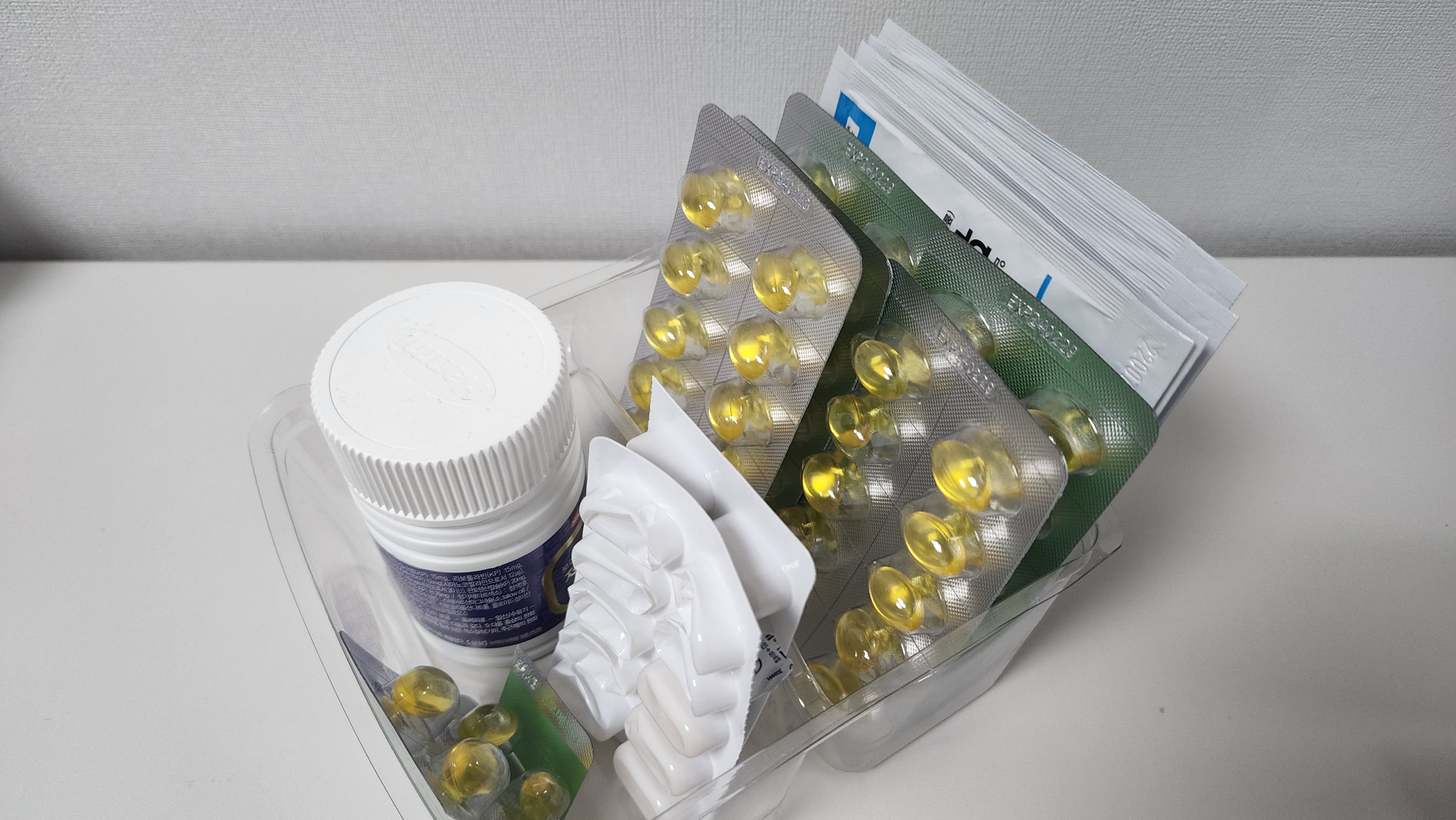 전 샌드위치 용기에 필기구류 담아놨어요