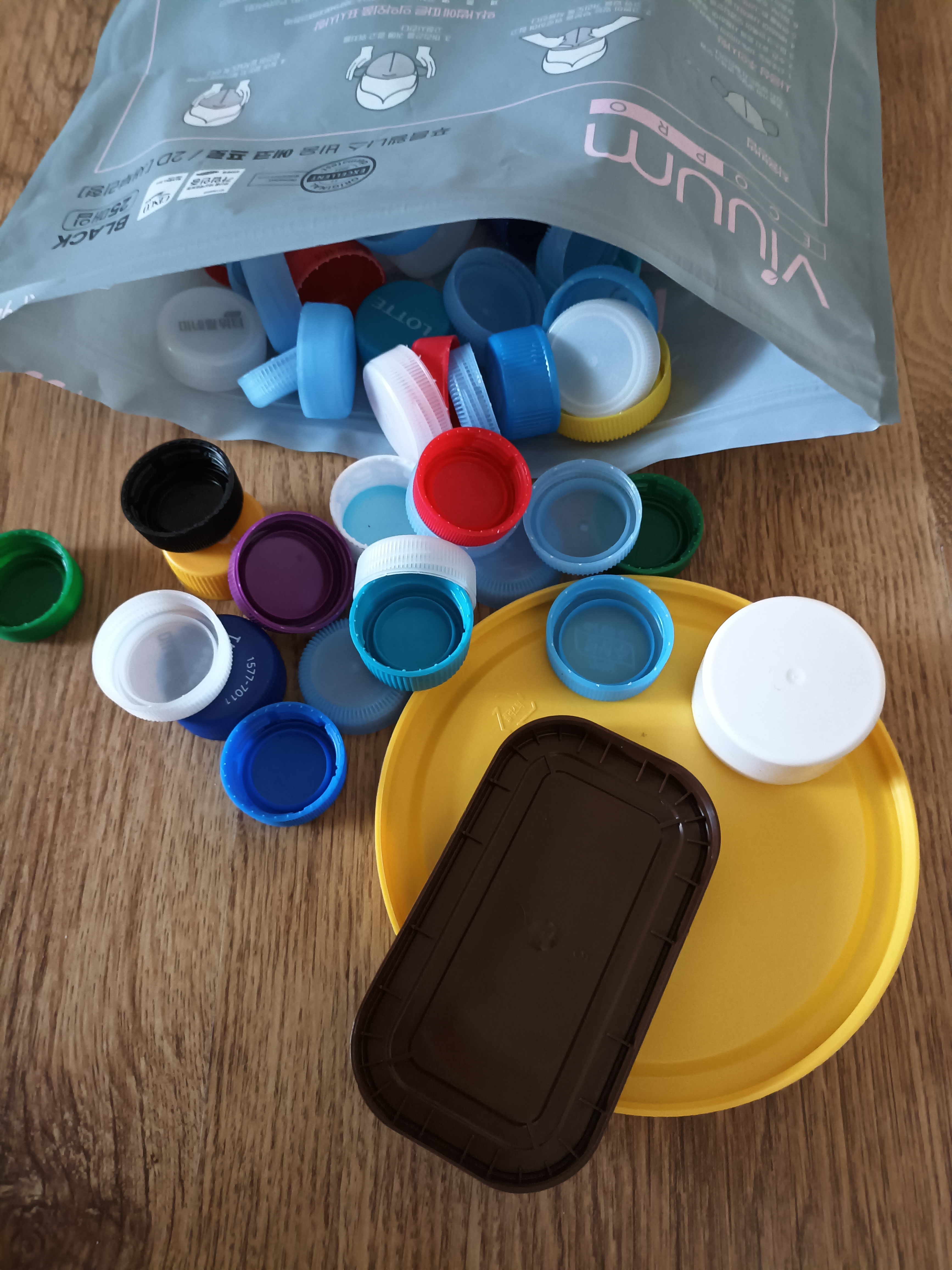 아이들과함께 모은 뚜껑들~