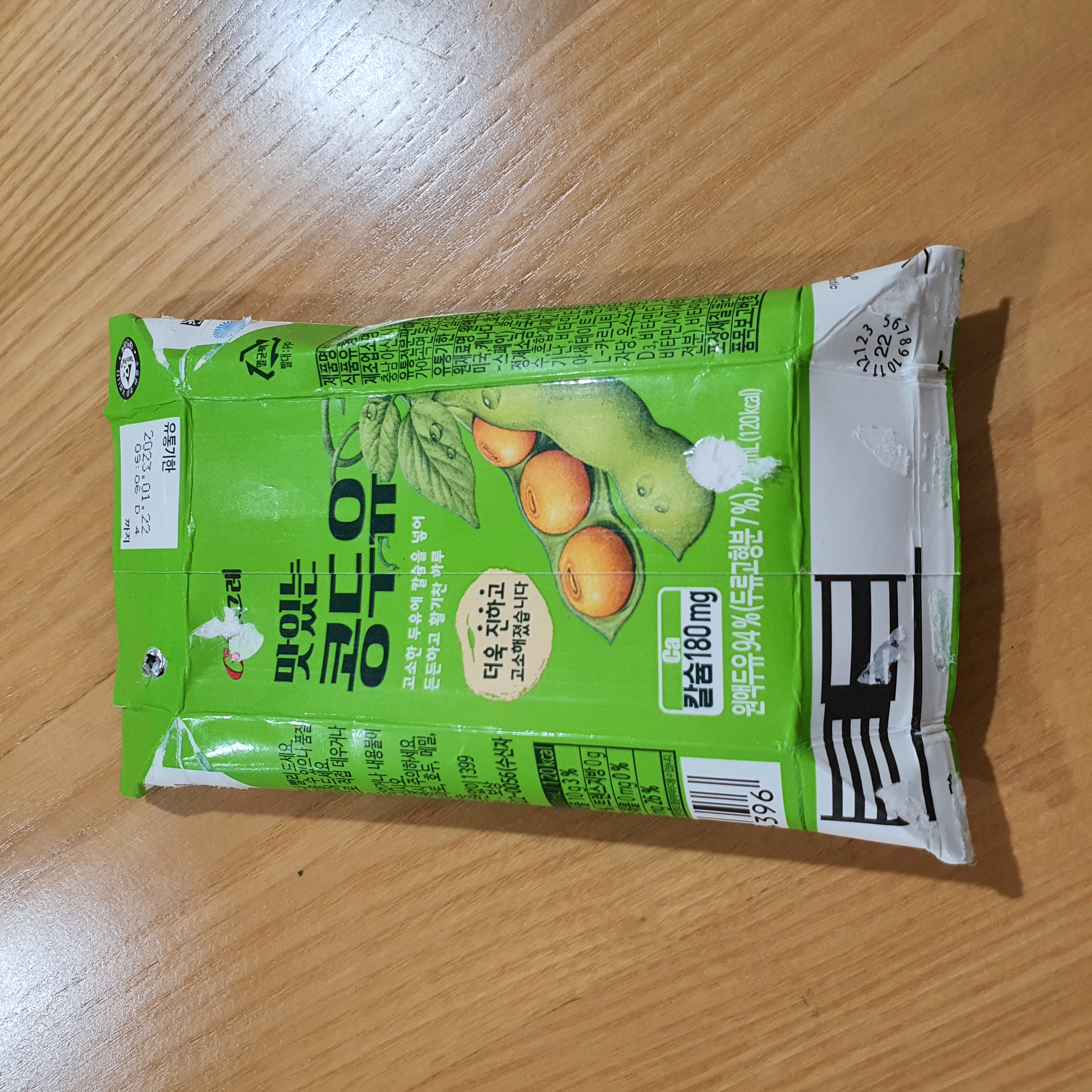 옆면을 보면 두유팩 가운데 부분에 세로로 줄이 생깁니다.