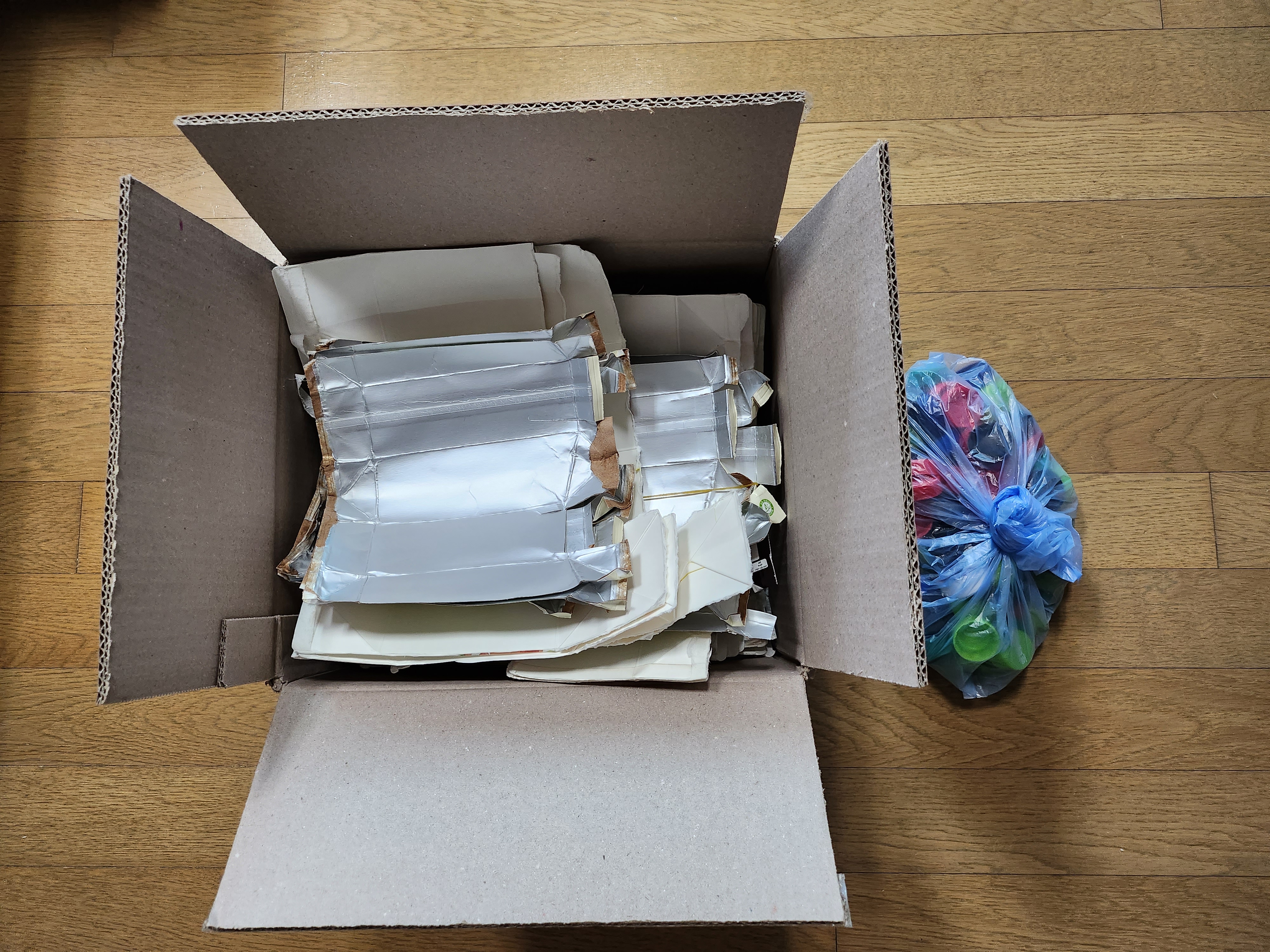 우유팩 &병뚜껑 100개 다 모았네요