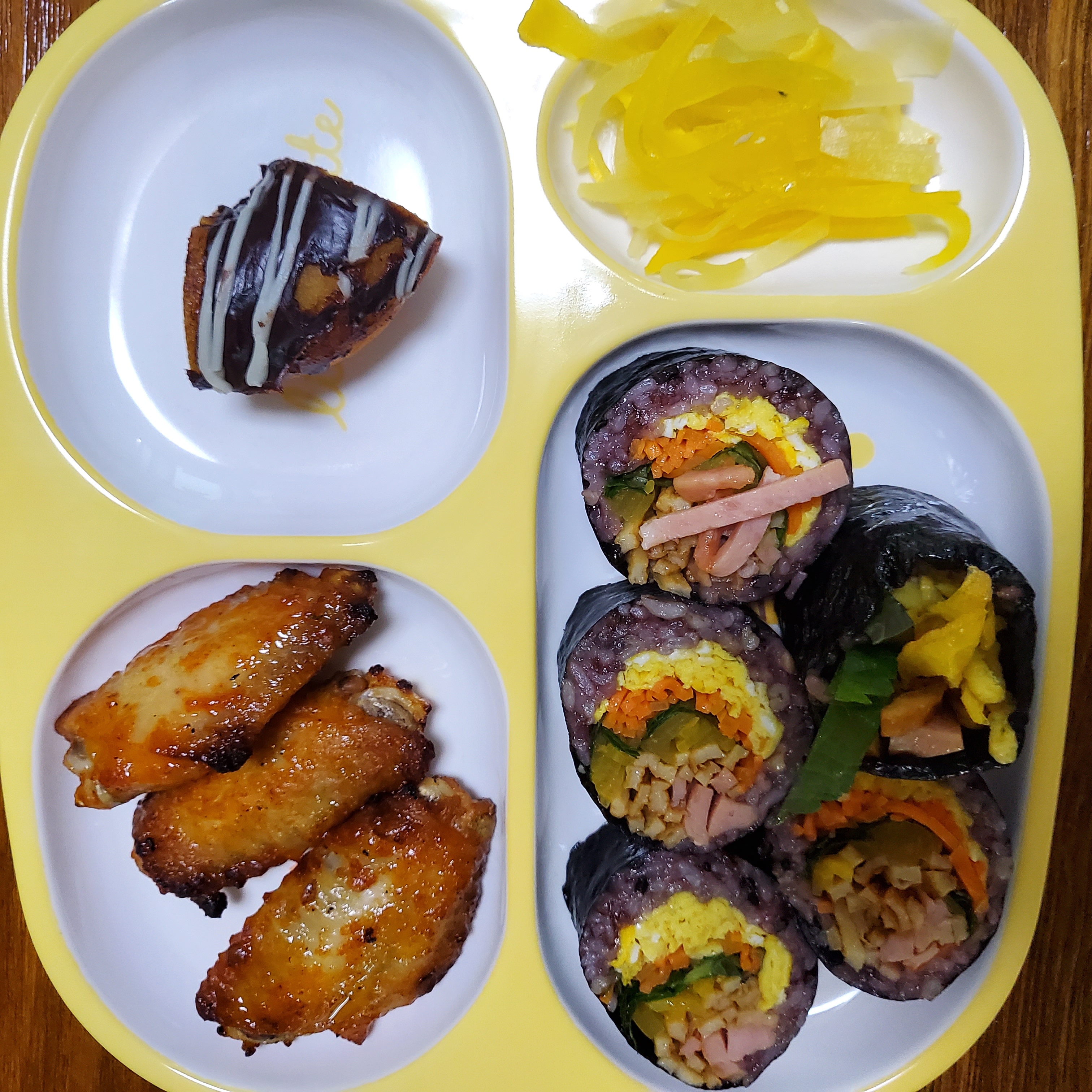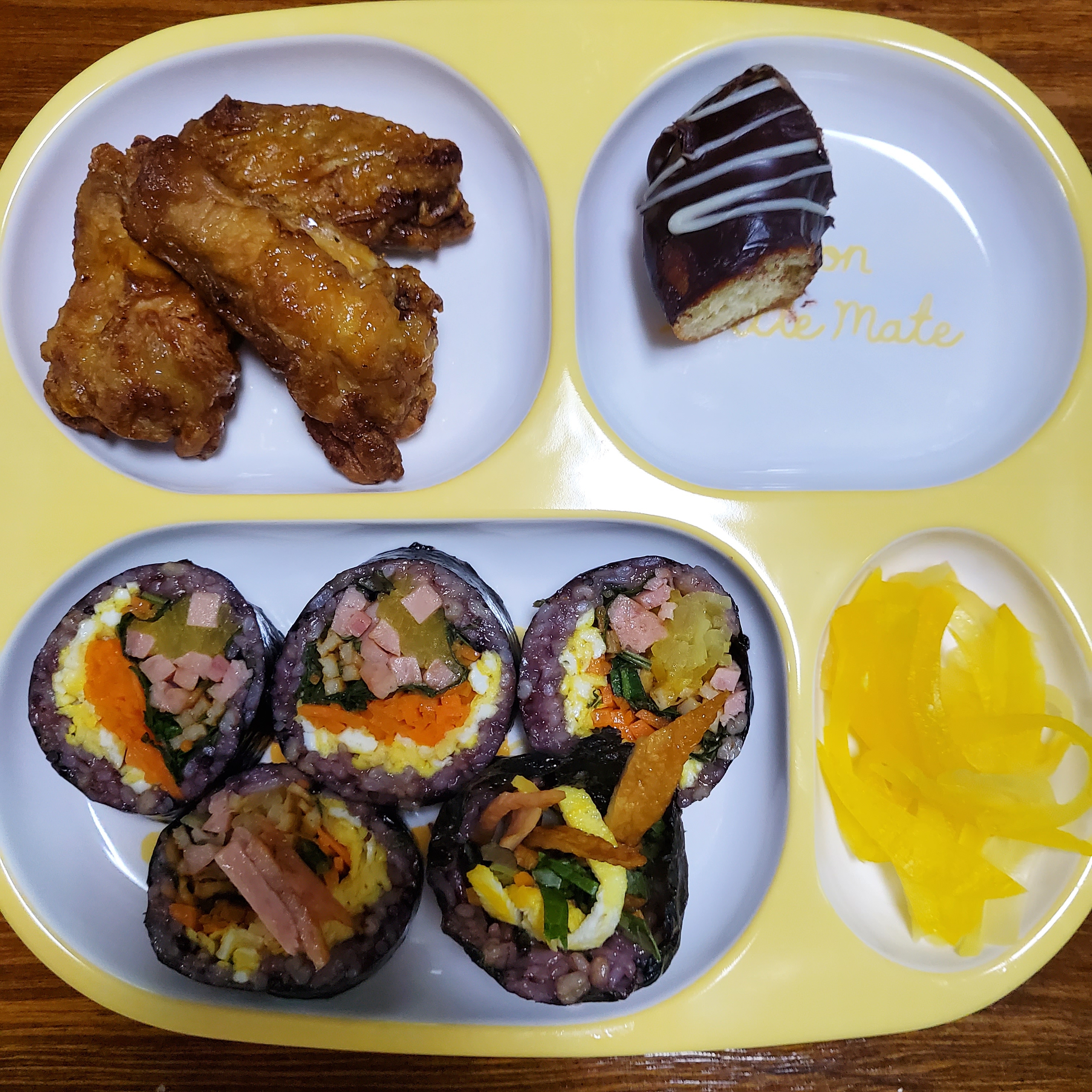 주말 아이들 아침은 식판에 간편히 주고 남김없이 다 먹는 습관을 키우죠