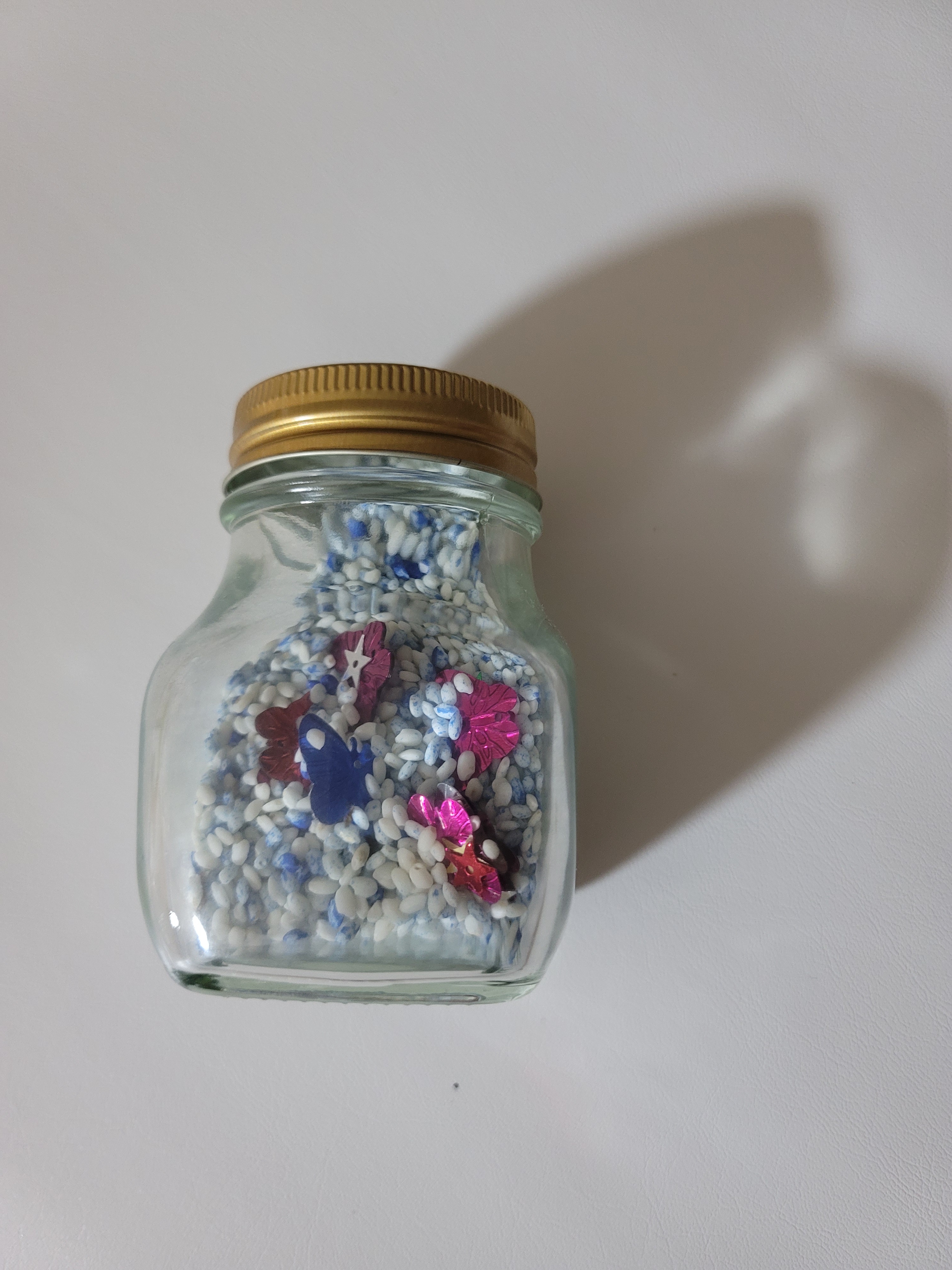 다 쓴 유리병이랑 안먹는 찹쌀로 마라카스 만들었어요