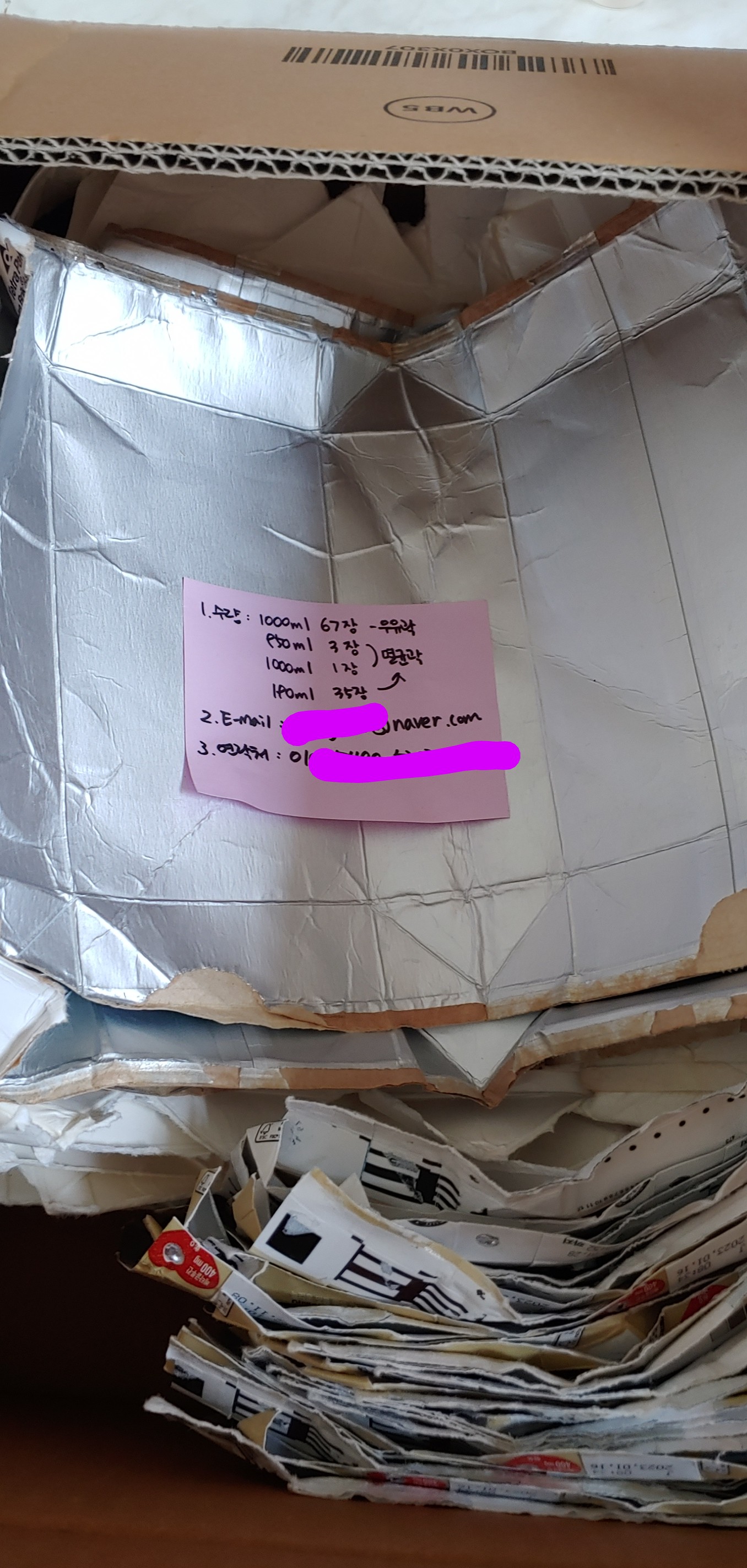 드뎌 보냅니다 우유팩!